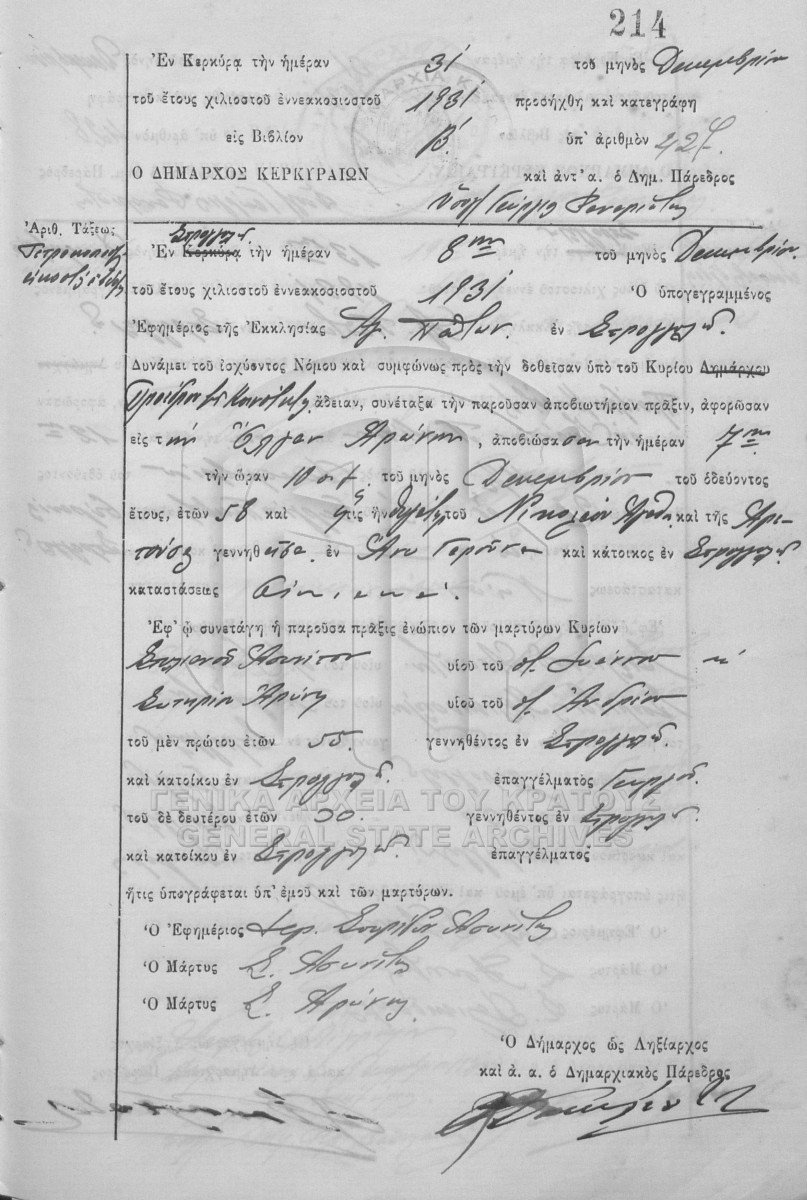 ΛΗΞΙΑΡΧΕΙΟ ΚΕΡΚΥΡΑΣ - Ληξιαρχικές Πράξεις Θανάτων  [1841 - 1932]