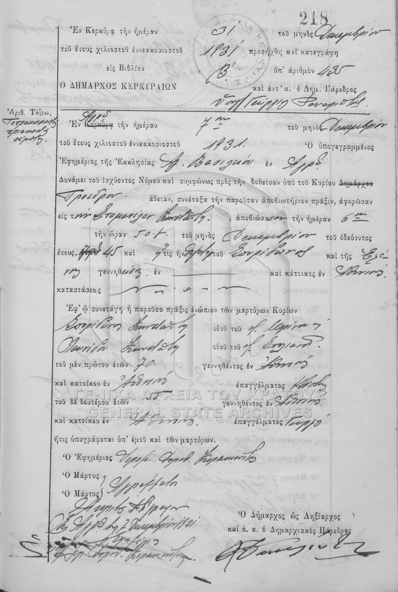Υποφάκελος #002 - ΛΗΞΙΑΡΧΕΙΟ ΚΕΡΚΥΡΑΣ  [1931]