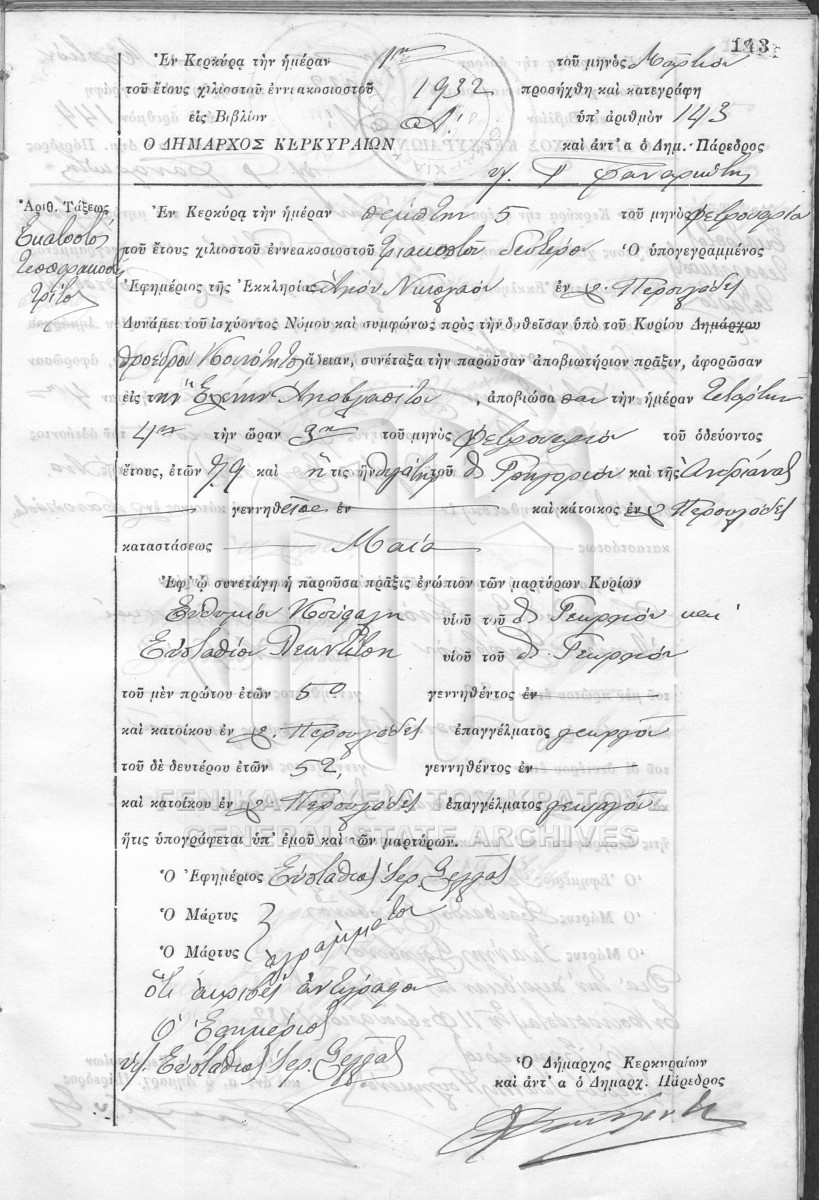 Υποφάκελος #001 - ΛΗΞΙΑΡΧΕΙΟ ΚΕΡΚΥΡΑΣ  [1932]