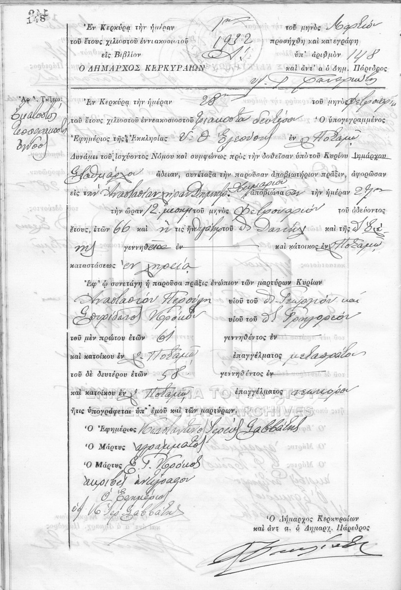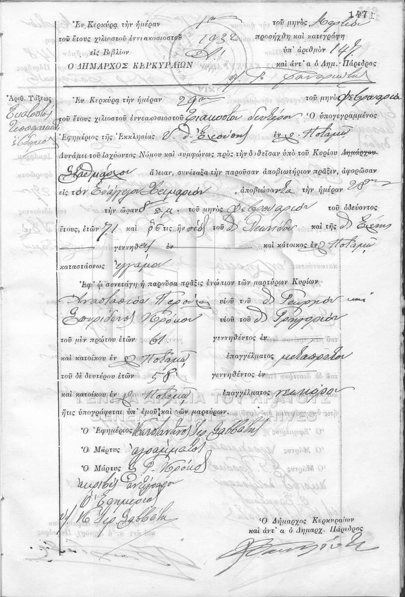 ΛΗΞΙΑΡΧΕΙΟ ΚΕΡΚΥΡΑΣ - Ληξιαρχικές Πράξεις Θανάτων  [1841 - 1932]