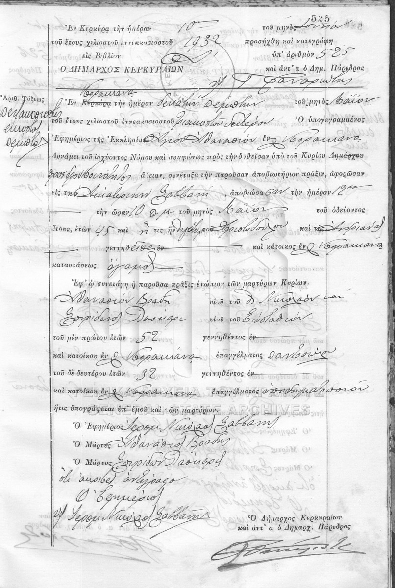 ΛΗΞΙΑΡΧΕΙΟ ΚΕΡΚΥΡΑΣ - Ληξιαρχικές Πράξεις Θανάτων  [1841 - 1932]