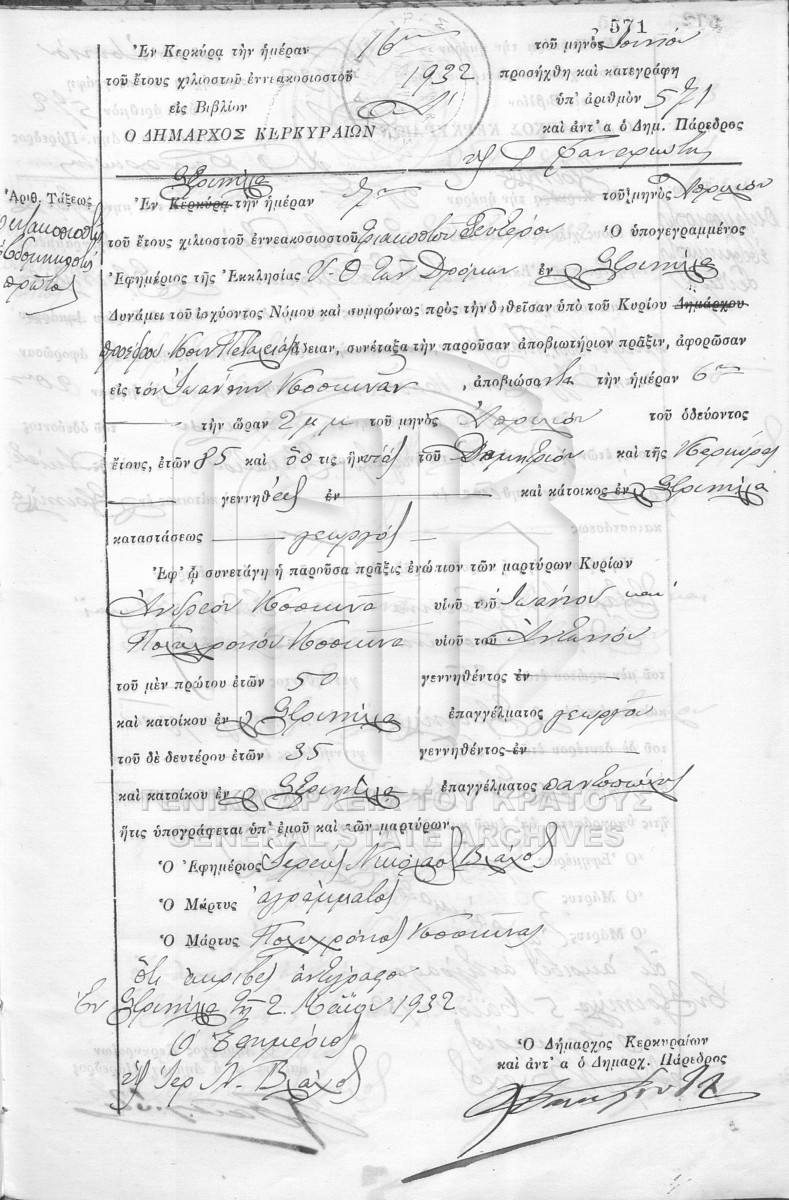 File #1932 - ΛΗΞΙΑΡΧΕΙΟ ΚΕΡΚΥΡΑΣ  [1932]