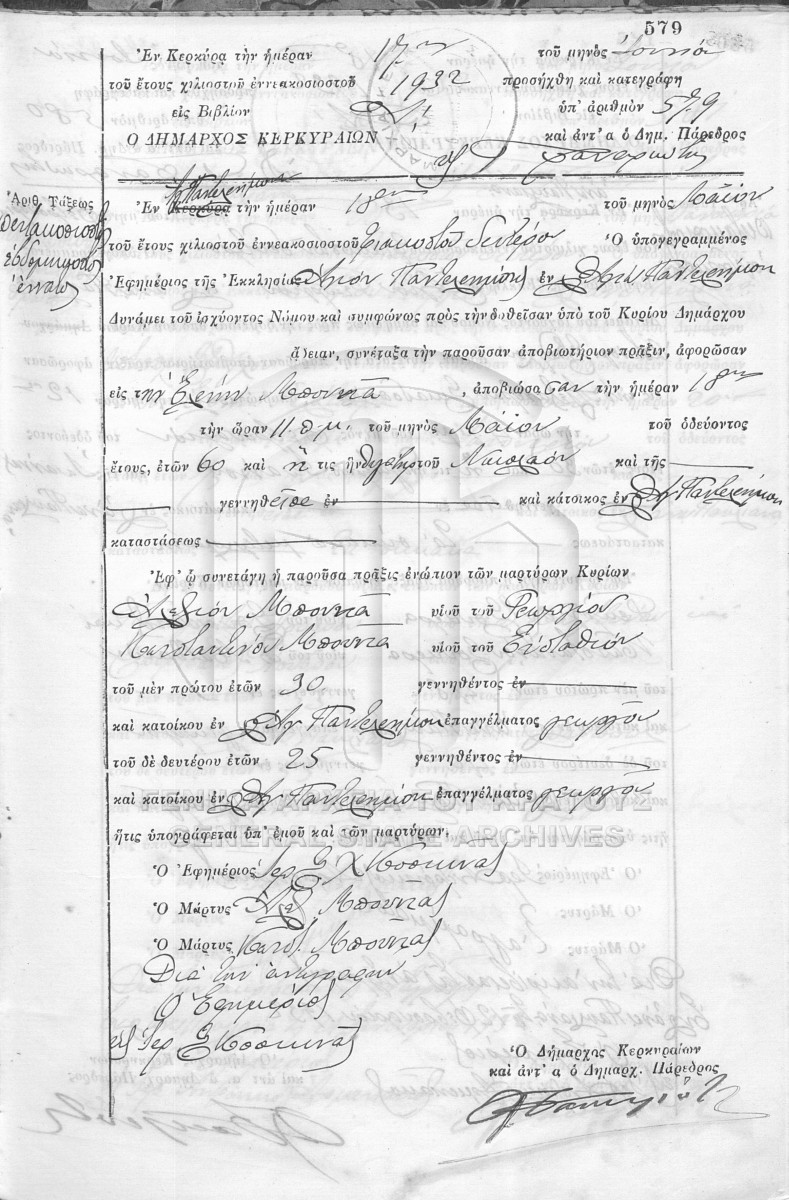 ΛΗΞΙΑΡΧΕΙΟ ΚΕΡΚΥΡΑΣ - Ληξιαρχικές Πράξεις Θανάτων  [1841 - 1932]