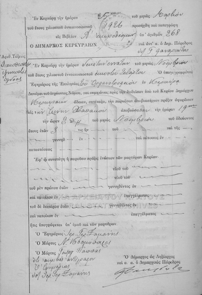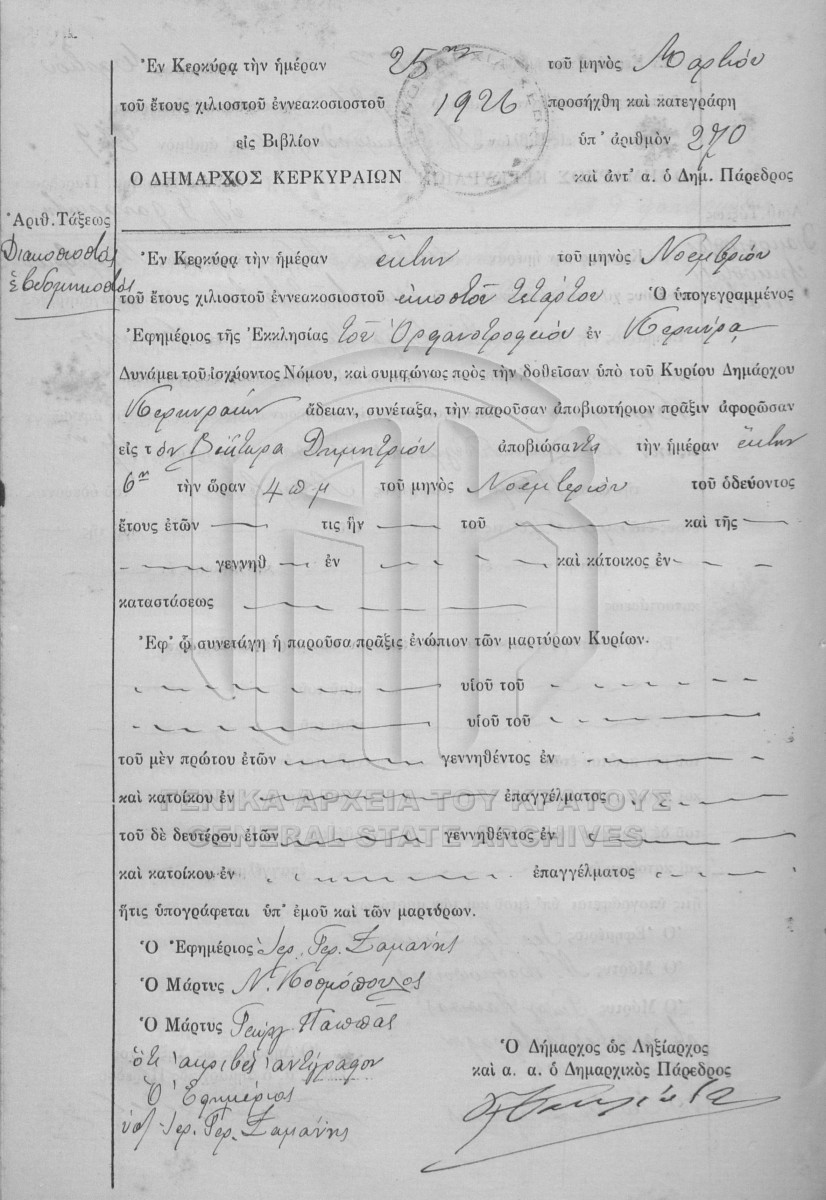 File #025 - ΛΗΞΙΑΡΧΕΙΟ ΚΕΡΚΥΡΑΣ  [1926]