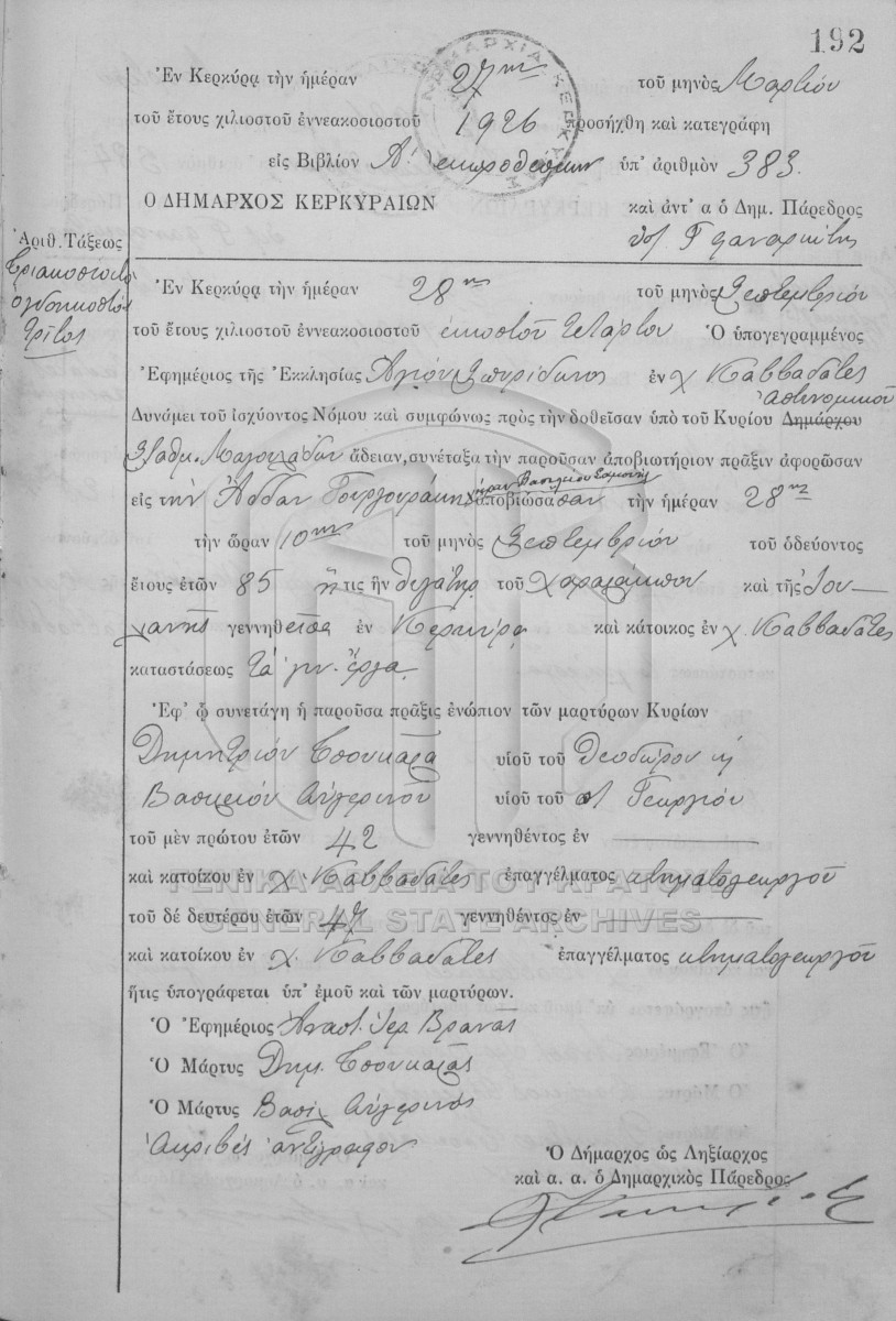 File #025 - ΛΗΞΙΑΡΧΕΙΟ ΚΕΡΚΥΡΑΣ  [1926]