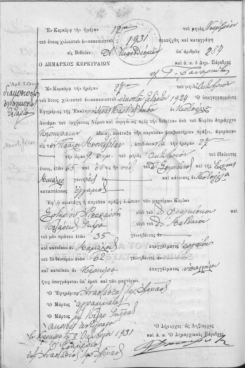 Φάκελος #032 - ΛΗΞΙΑΡΧΕΙΟ ΚΕΡΚΥΡΑΣ  [1931]
