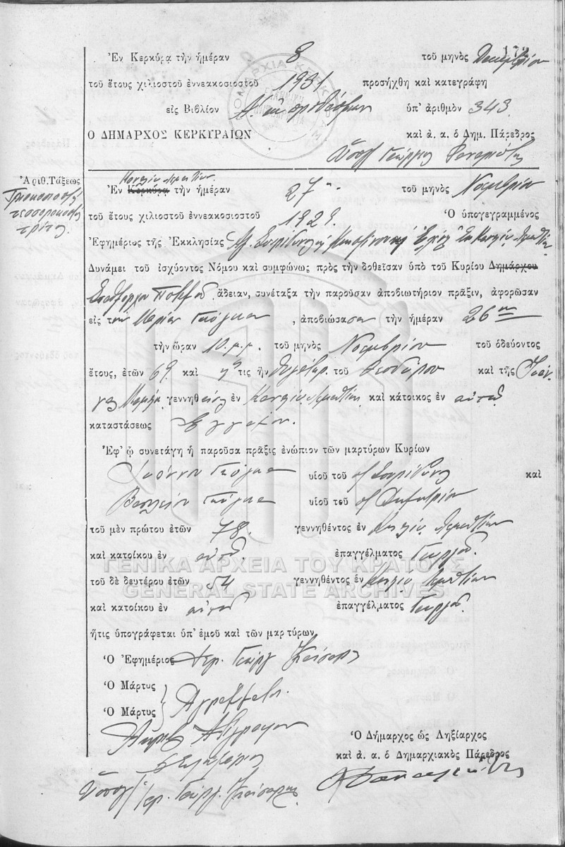 File #032 - ΛΗΞΙΑΡΧΕΙΟ ΚΕΡΚΥΡΑΣ  [1931]