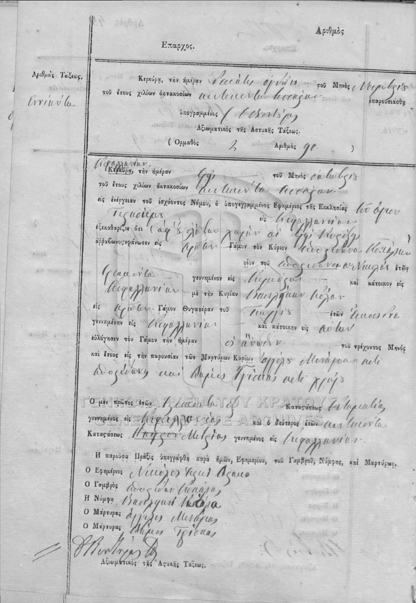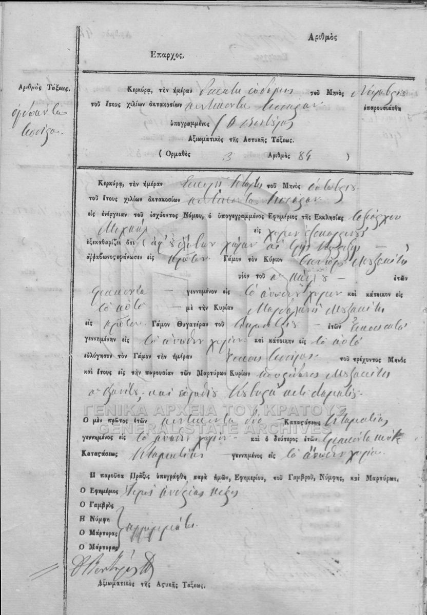 ΛΗΞΙΑΡΧΕΙΟ ΚΕΡΚΥΡΑΣ - Ληξιαρχικές Πράξεις Γάμων  [1841 - 1932]