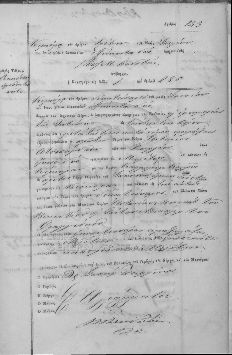 [Fonds] GRGSA-KER_REGM00 ΛΗΞΙΑΡΧΕΙΟ ΚΕΡΚΥΡΑΣ - Ληξιαρχικές Πράξεις Γάμων [1841 - 1932] Contents: Αριθμός πράξεων 1 - 324. |