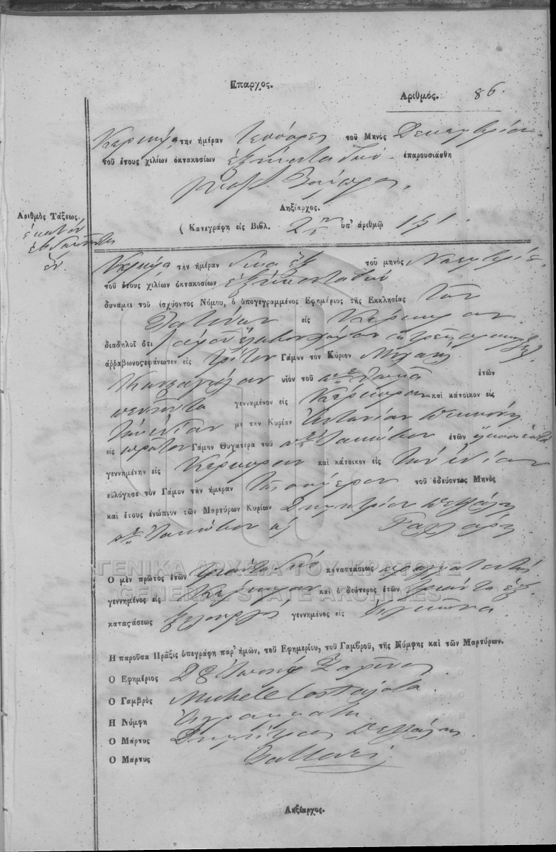 ΛΗΞΙΑΡΧΕΙΟ ΚΕΡΚΥΡΑΣ - Ληξιαρχικές Πράξεις Γάμων  [1841 - 1932]
