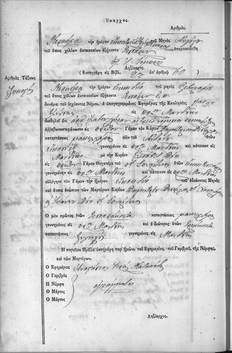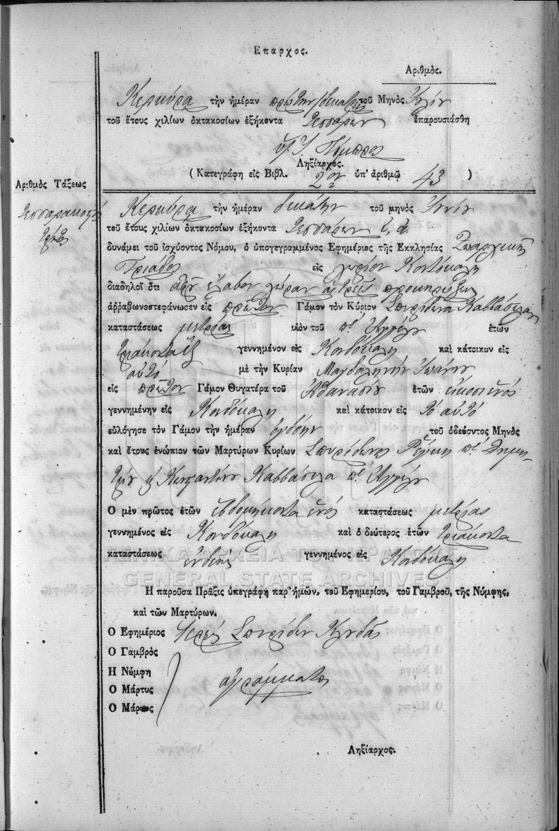 [Αρχείο] GRGSA-KER_REGM00 ΛΗΞΙΑΡΧΕΙΟ ΚΕΡΚΥΡΑΣ - Ληξιαρχικές Πράξεις Γάμων [1841 - 1932] Περιεχόμενα: Αριθμός πράξεων 1 - 324. |