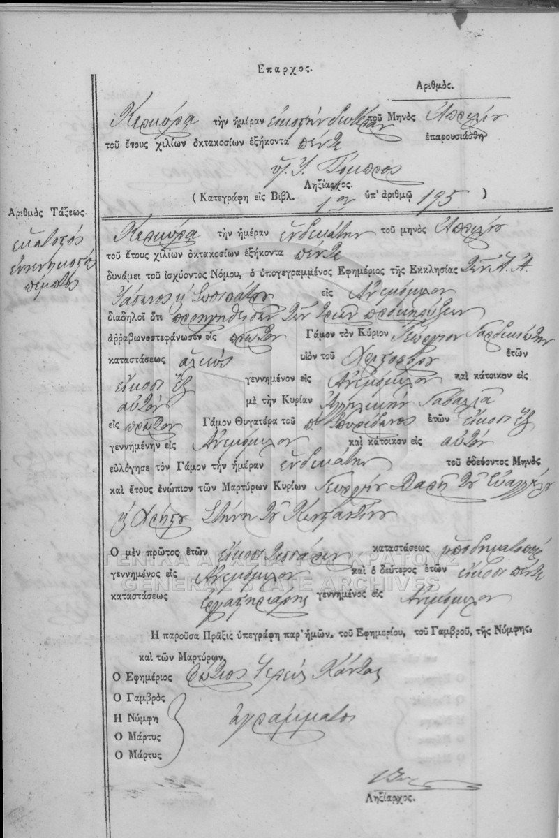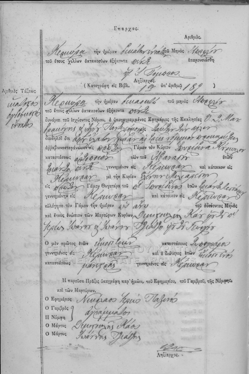 ΛΗΞΙΑΡΧΕΙΟ ΚΕΡΚΥΡΑΣ - Ληξιαρχικές Πράξεις Γάμων  [1841 - 1932]