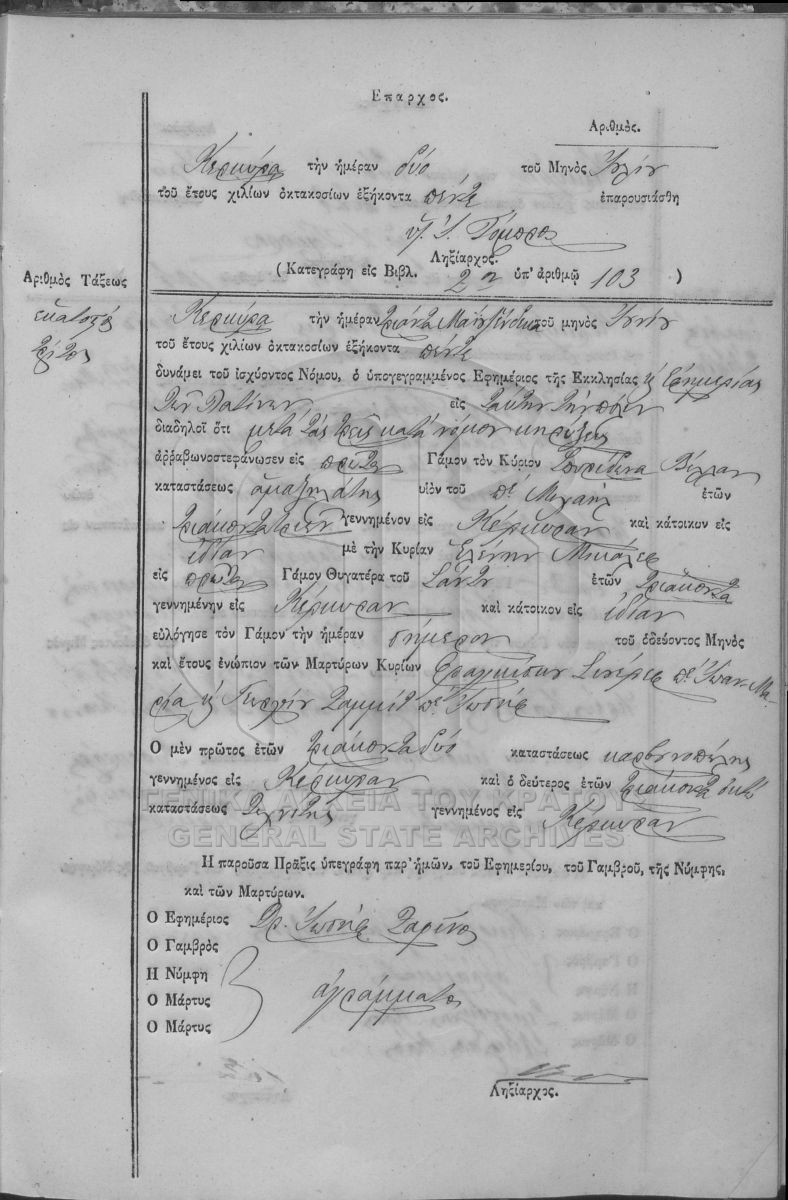 ΛΗΞΙΑΡΧΕΙΟ ΚΕΡΚΥΡΑΣ - Ληξιαρχικές Πράξεις Γάμων  [1841 - 1932]