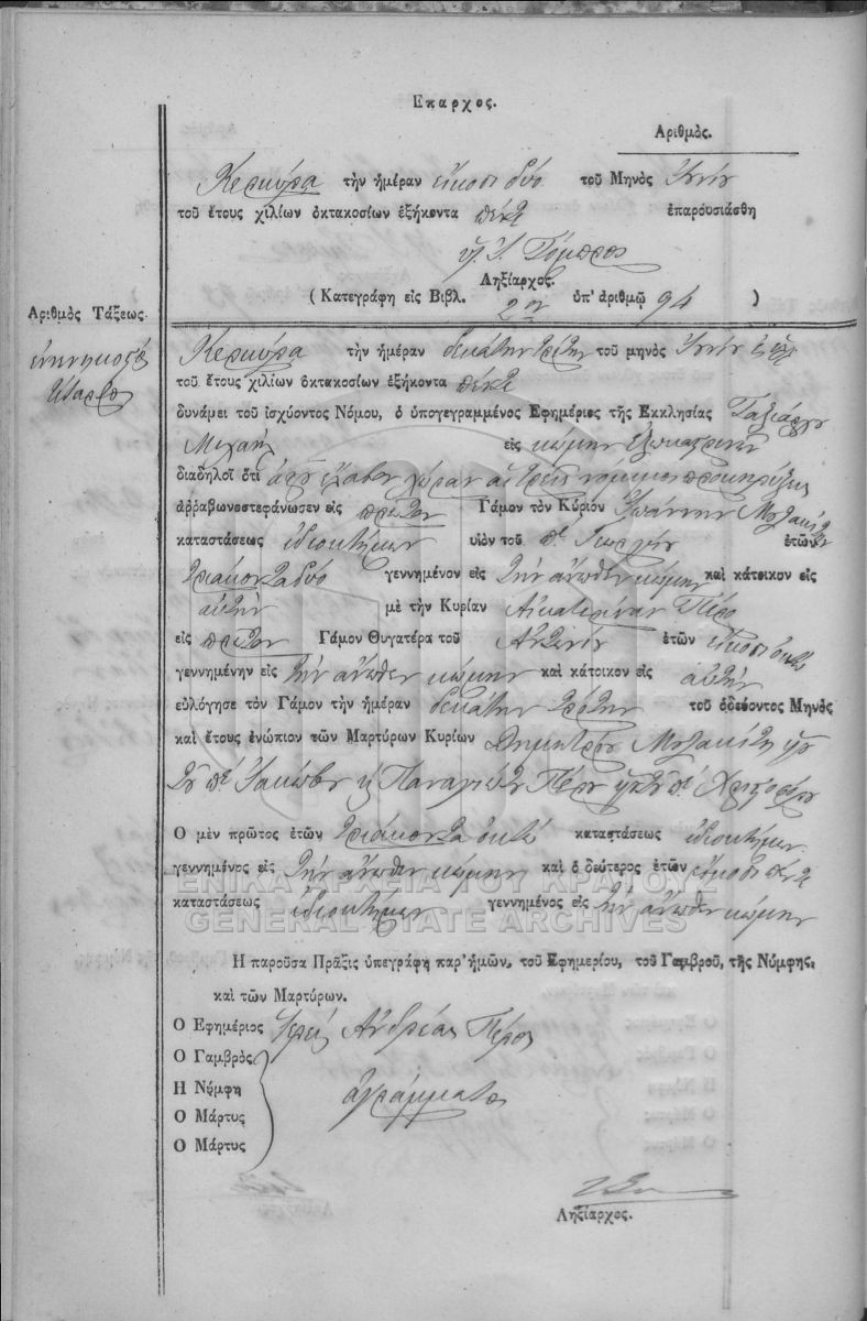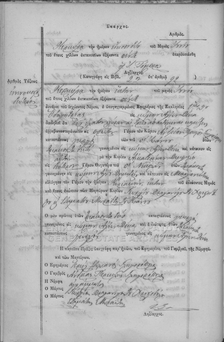 ΛΗΞΙΑΡΧΕΙΟ ΚΕΡΚΥΡΑΣ - Ληξιαρχικές Πράξεις Γάμων  [1841 - 1932]