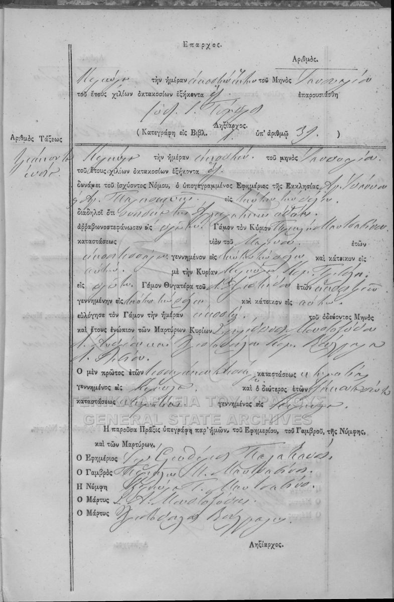 ΛΗΞΙΑΡΧΕΙΟ ΚΕΡΚΥΡΑΣ - Ληξιαρχικές Πράξεις Γάμων  [1841 - 1932]