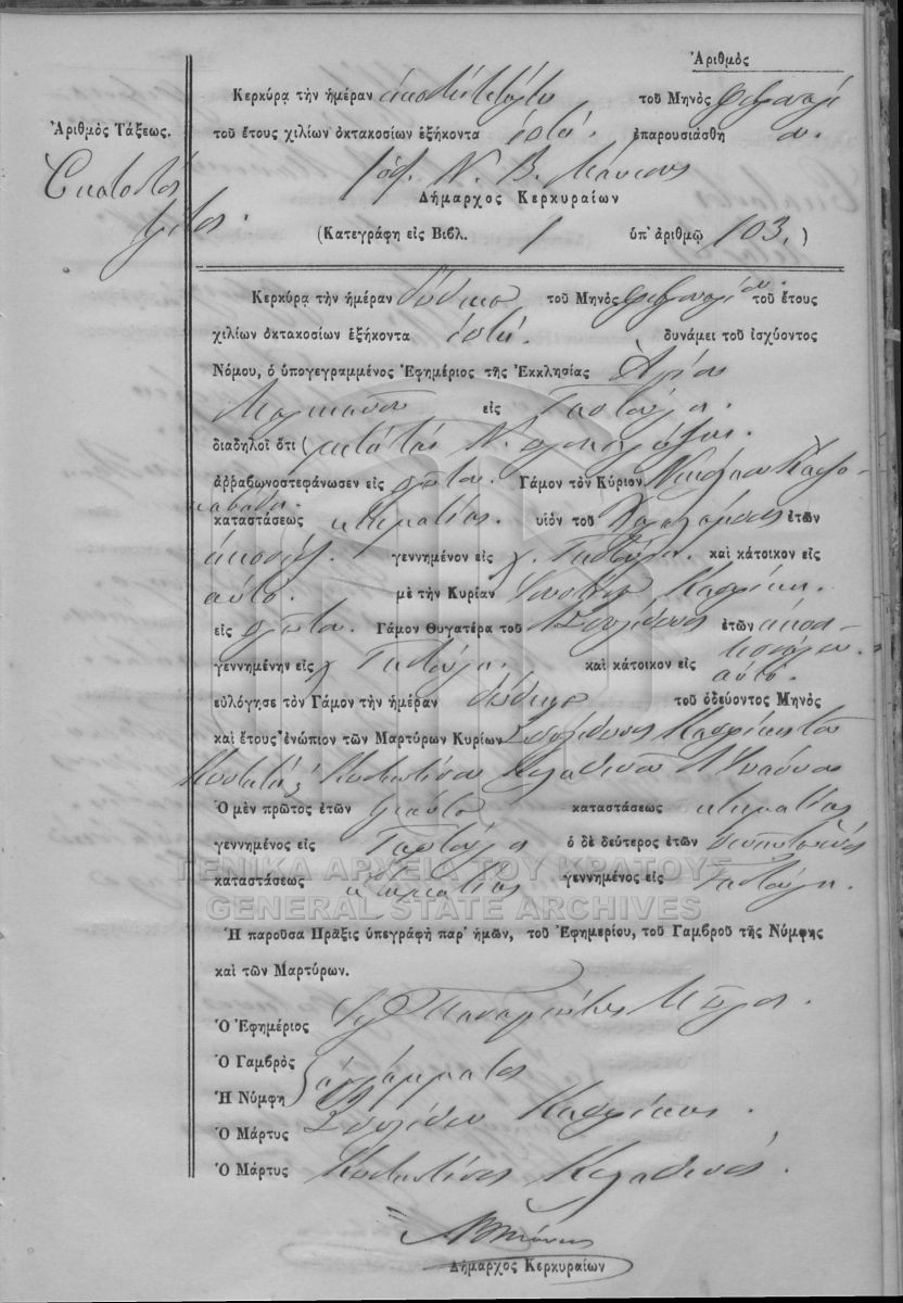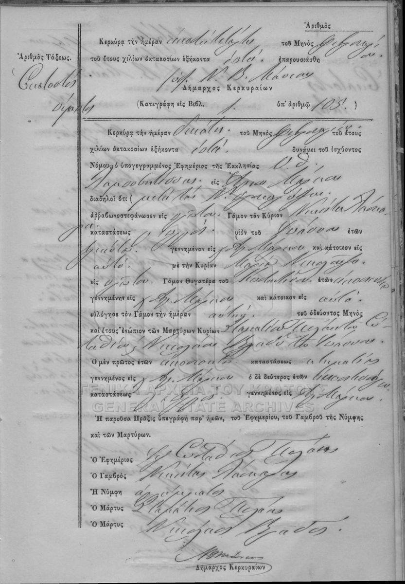 [Fonds] GRGSA-KER_REGM00 ΛΗΞΙΑΡΧΕΙΟ ΚΕΡΚΥΡΑΣ - Ληξιαρχικές Πράξεις Γάμων [1841 - 1932] Contents: Αριθμός πράξεων 1 - 324. |