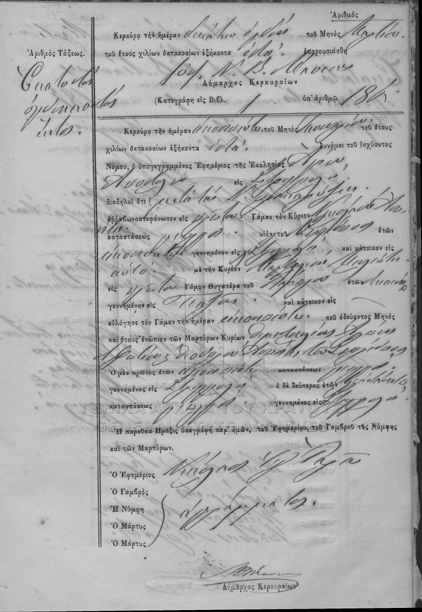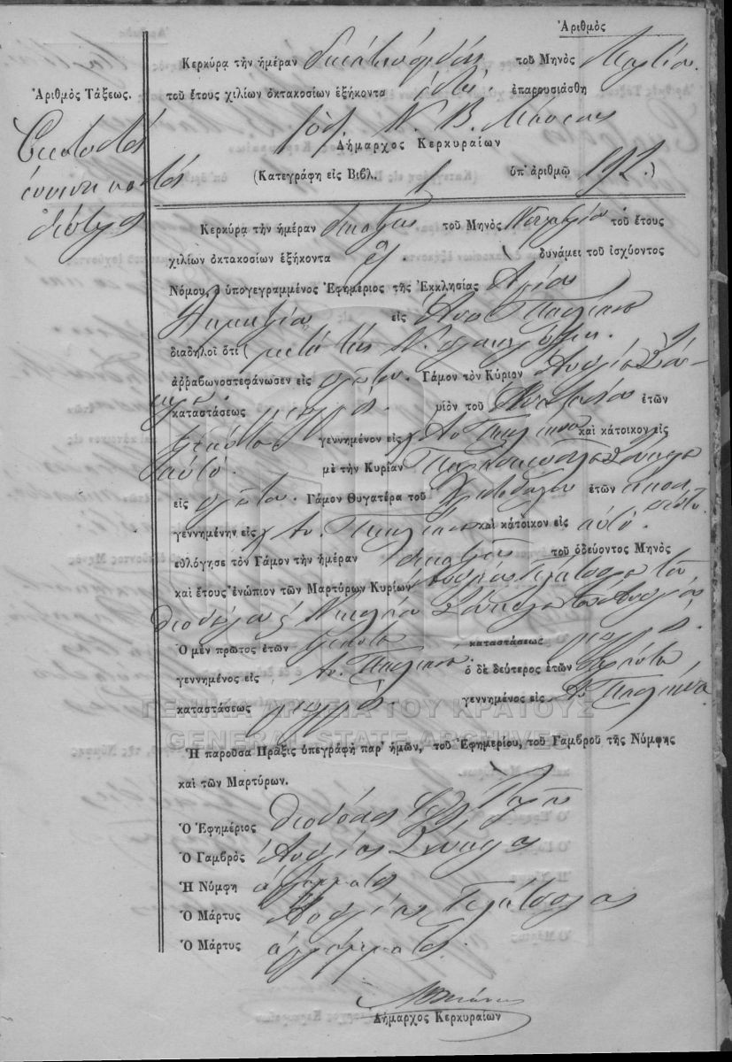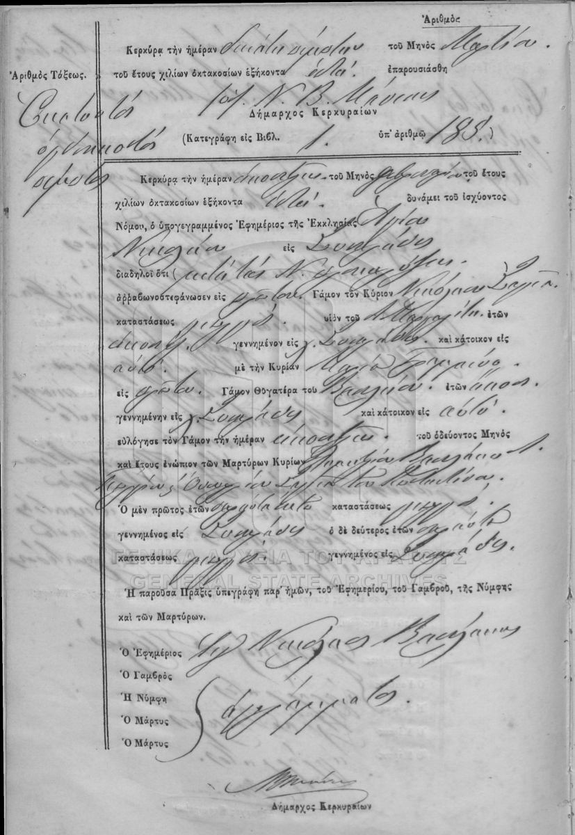 [Fonds] GRGSA-KER_REGM00 ΛΗΞΙΑΡΧΕΙΟ ΚΕΡΚΥΡΑΣ - Ληξιαρχικές Πράξεις Γάμων [1841 - 1932] Contents: Αριθμός πράξεων 1 - 324. |