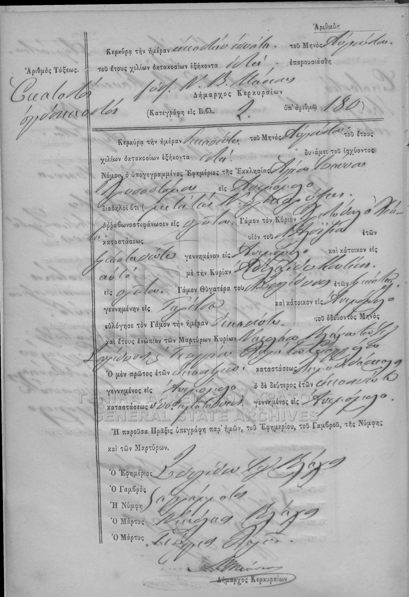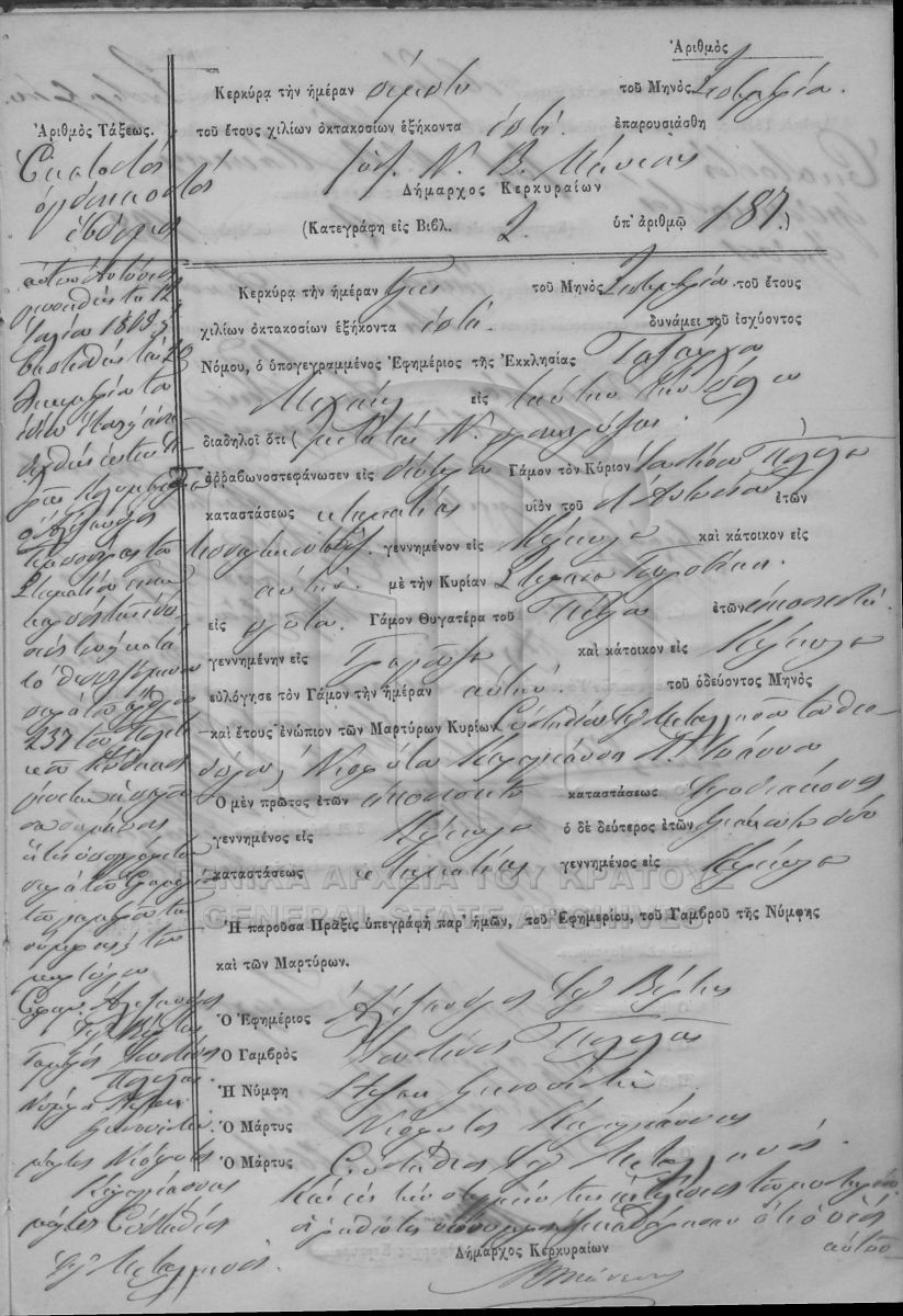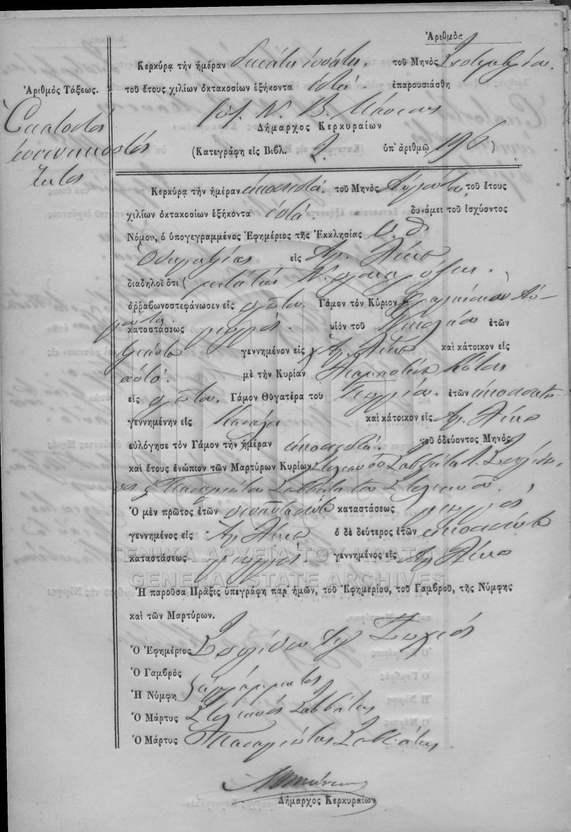 [Fonds] GRGSA-KER_REGM00 ΛΗΞΙΑΡΧΕΙΟ ΚΕΡΚΥΡΑΣ - Ληξιαρχικές Πράξεις Γάμων [1841 - 1932] Contenu: Αριθμός πράξεων 1 - 324. |