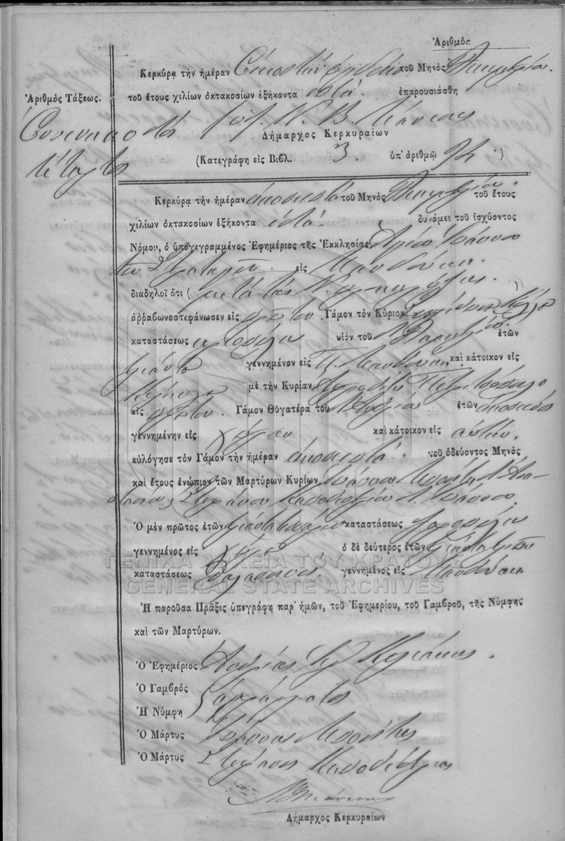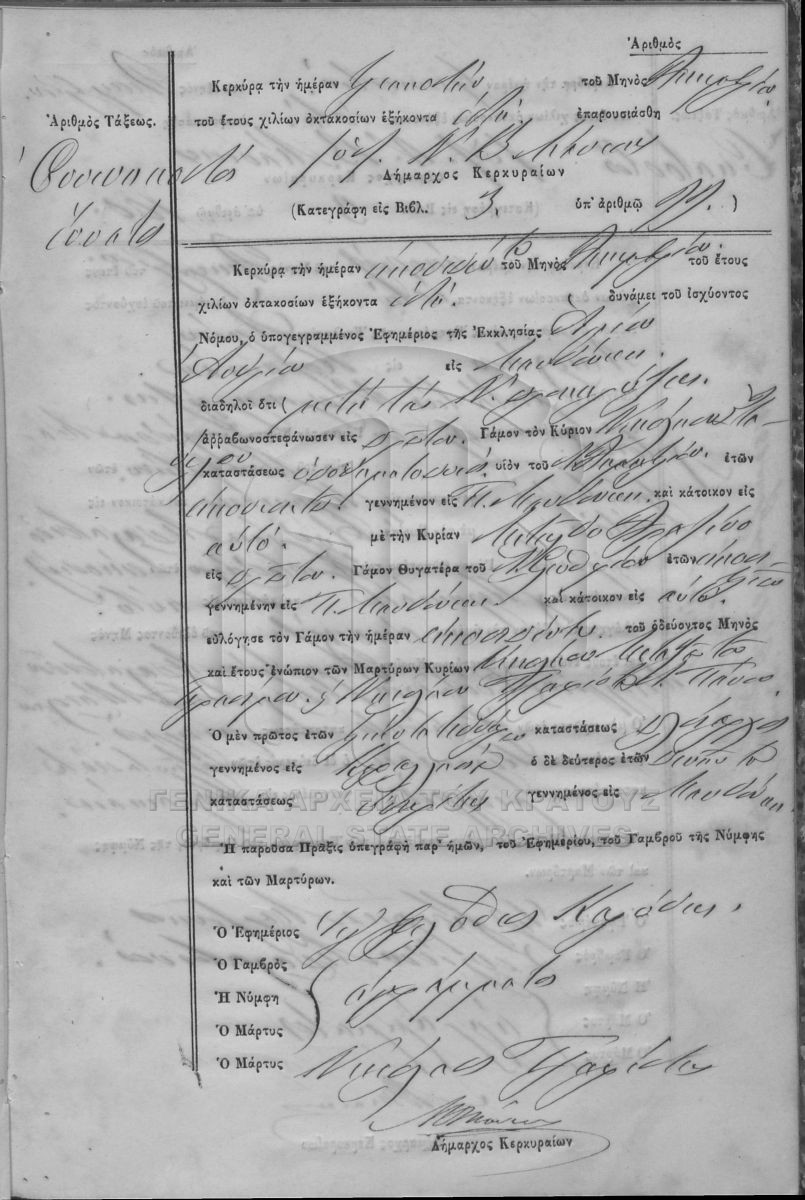 ΛΗΞΙΑΡΧΕΙΟ ΚΕΡΚΥΡΑΣ - Ληξιαρχικές Πράξεις Γάμων  [1841 - 1932]
