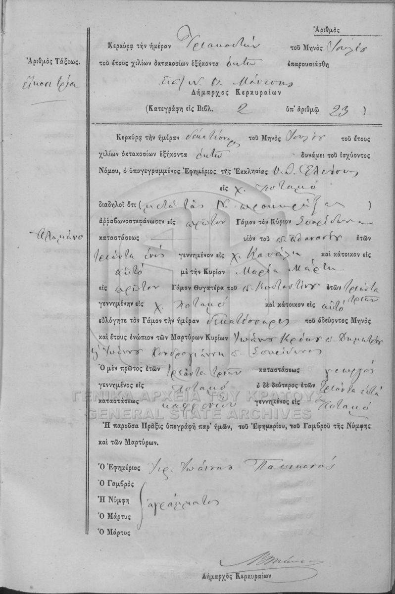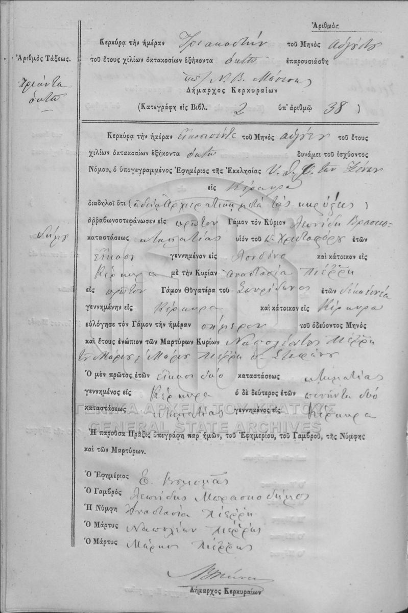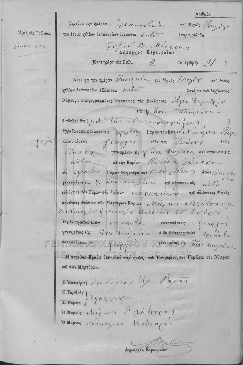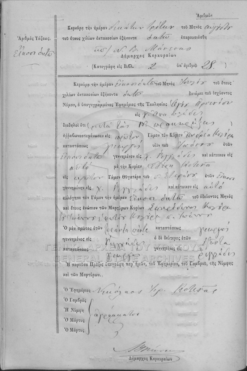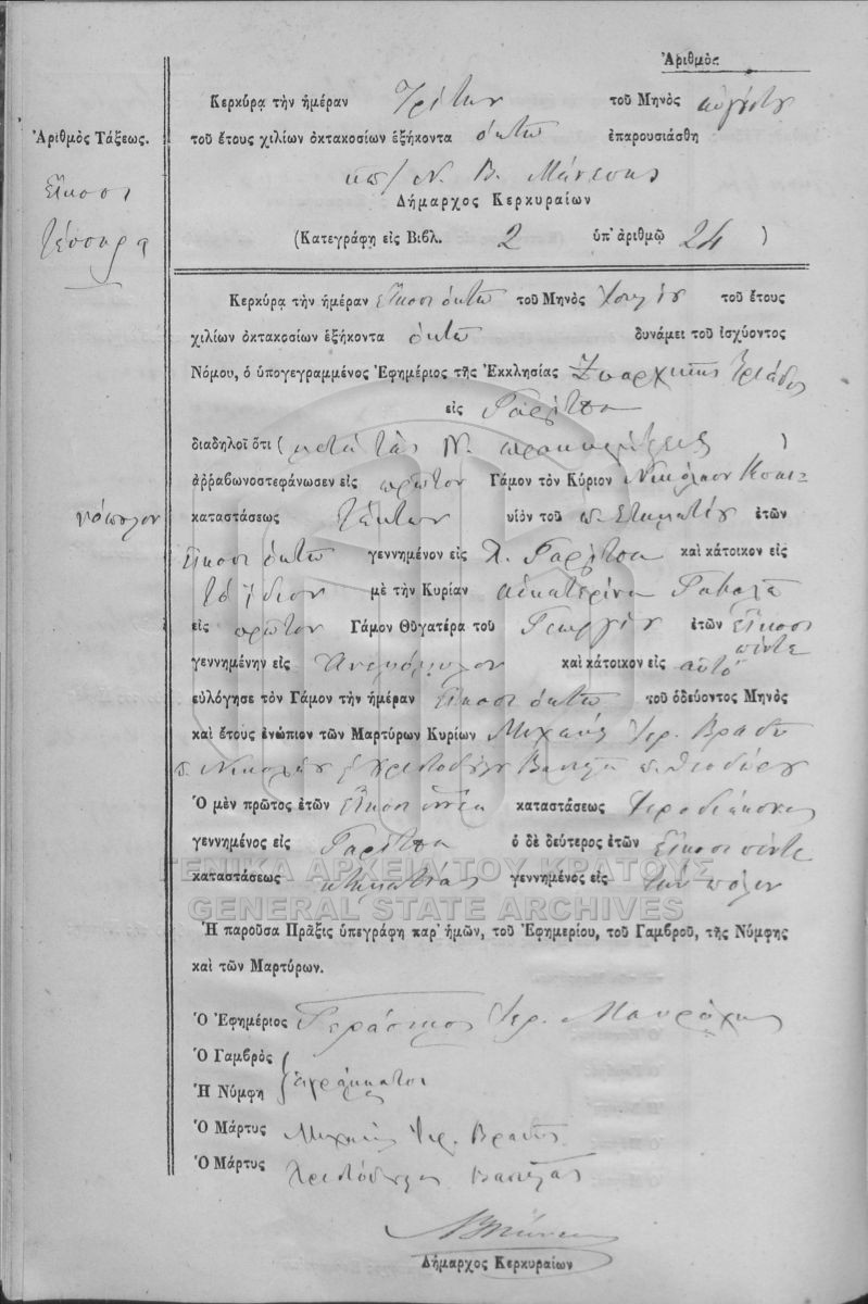 ΛΗΞΙΑΡΧΕΙΟ ΚΕΡΚΥΡΑΣ - Ληξιαρχικές Πράξεις Γάμων  [1841 - 1932]