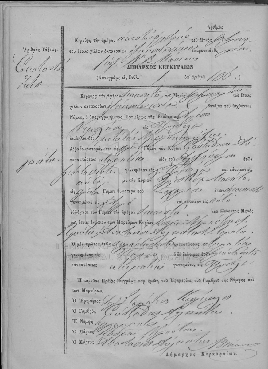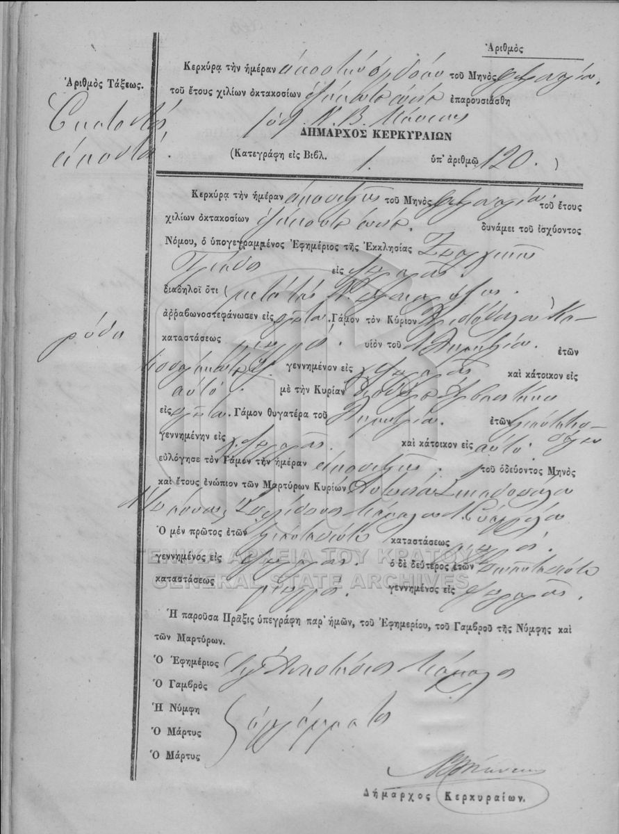 ΛΗΞΙΑΡΧΕΙΟ ΚΕΡΚΥΡΑΣ - Ληξιαρχικές Πράξεις Γάμων  [1841 - 1932]