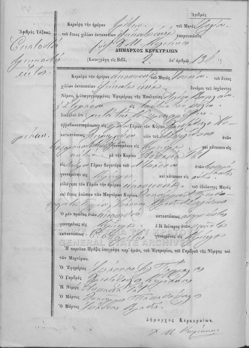 ΛΗΞΙΑΡΧΕΙΟ ΚΕΡΚΥΡΑΣ - Ληξιαρχικές Πράξεις Γάμων  [1841 - 1932]