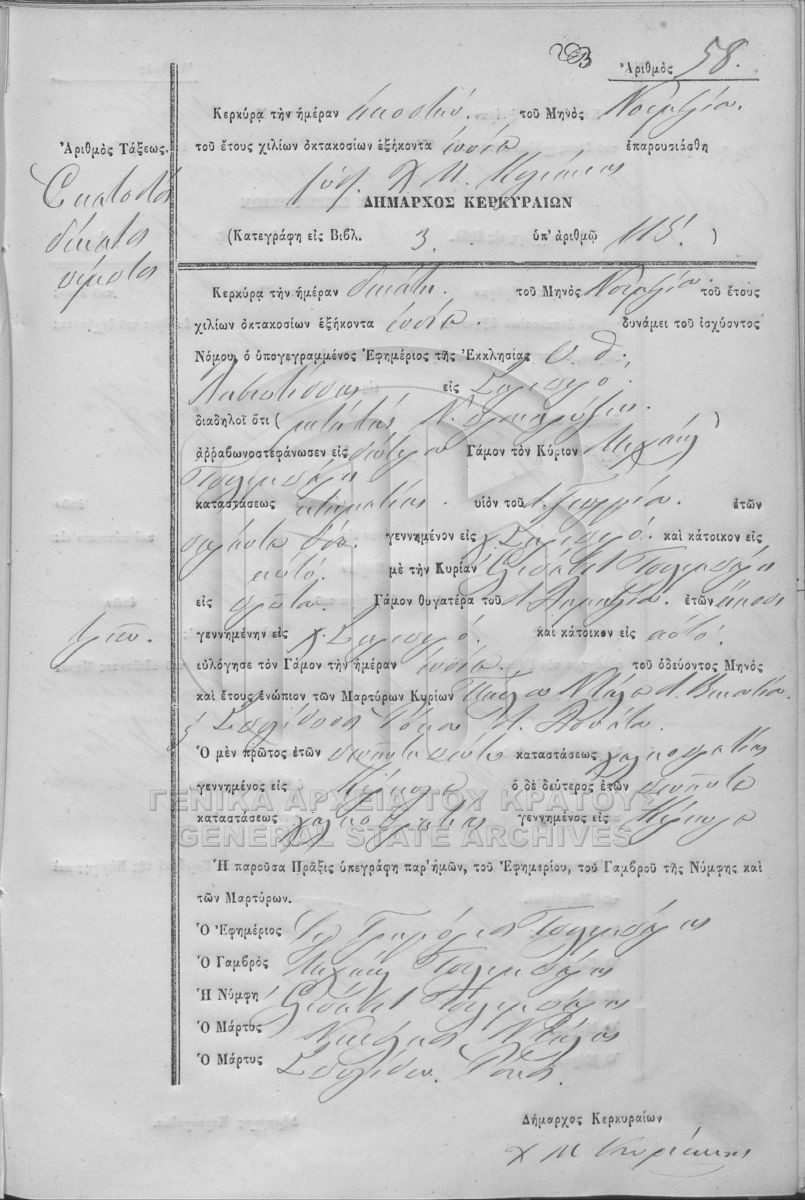 ΛΗΞΙΑΡΧΕΙΟ ΚΕΡΚΥΡΑΣ - Ληξιαρχικές Πράξεις Γάμων  [1841 - 1932]