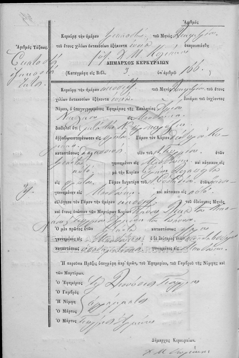 ΛΗΞΙΑΡΧΕΙΟ ΚΕΡΚΥΡΑΣ - Ληξιαρχικές Πράξεις Γάμων  [1841 - 1932]