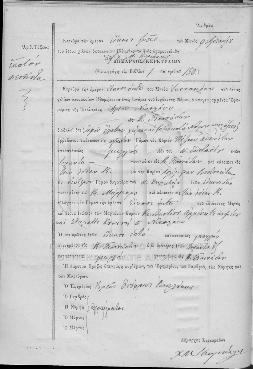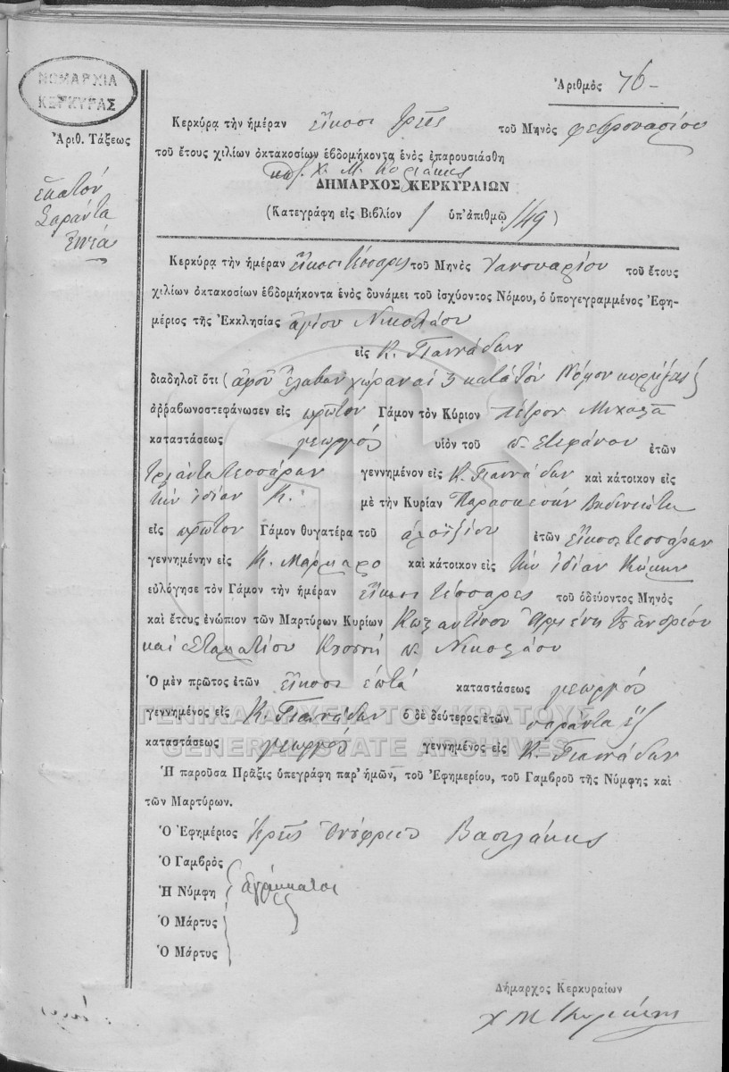ΛΗΞΙΑΡΧΕΙΟ ΚΕΡΚΥΡΑΣ - Ληξιαρχικές Πράξεις Γάμων  [1841 - 1932]
