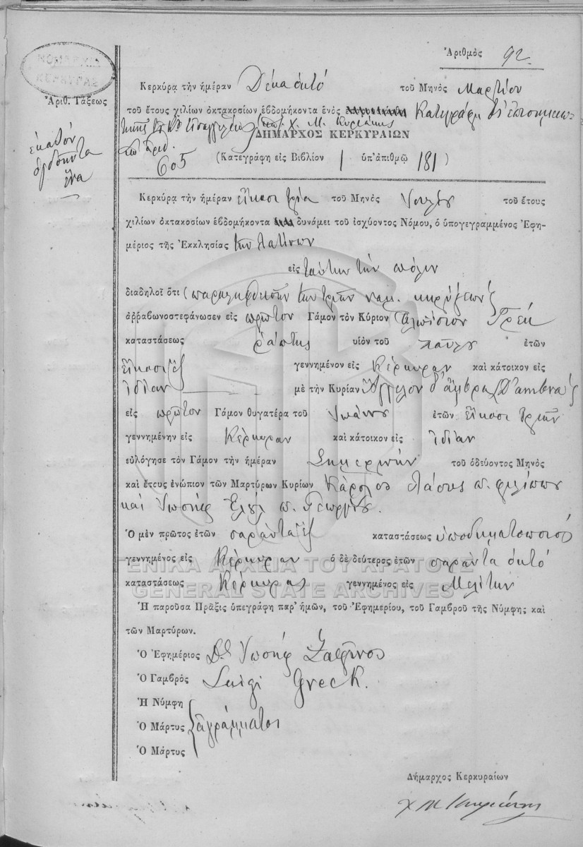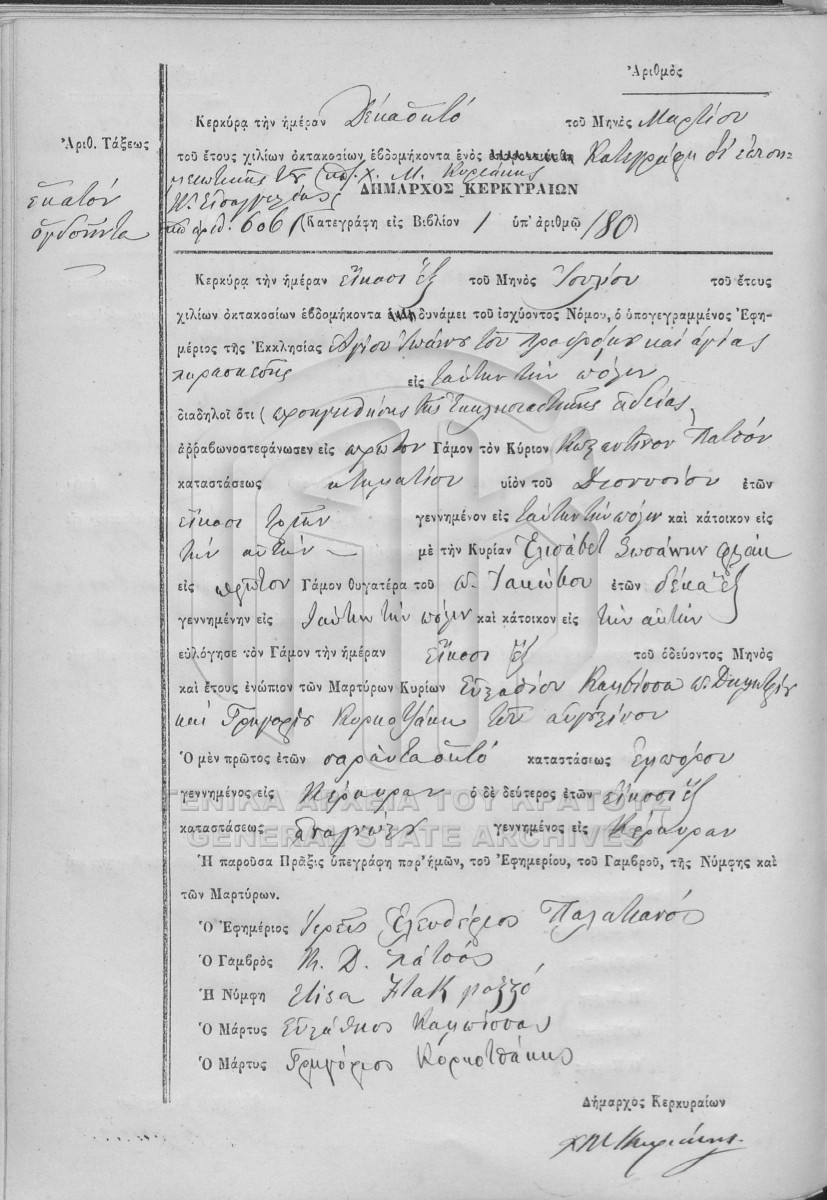 ΛΗΞΙΑΡΧΕΙΟ ΚΕΡΚΥΡΑΣ - Ληξιαρχικές Πράξεις Γάμων  [1841 - 1932]