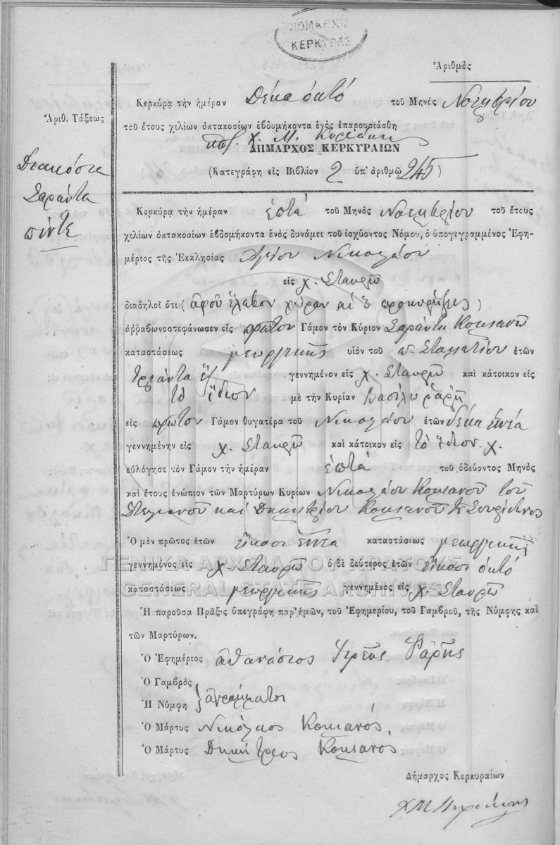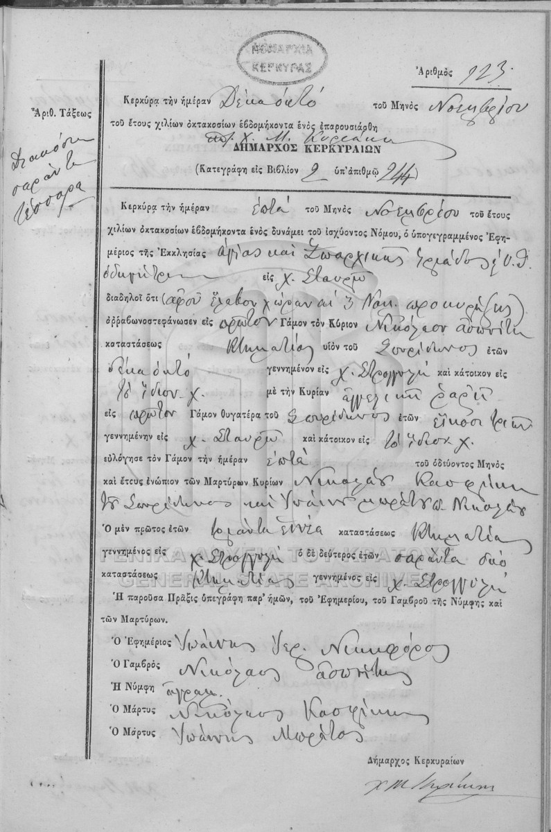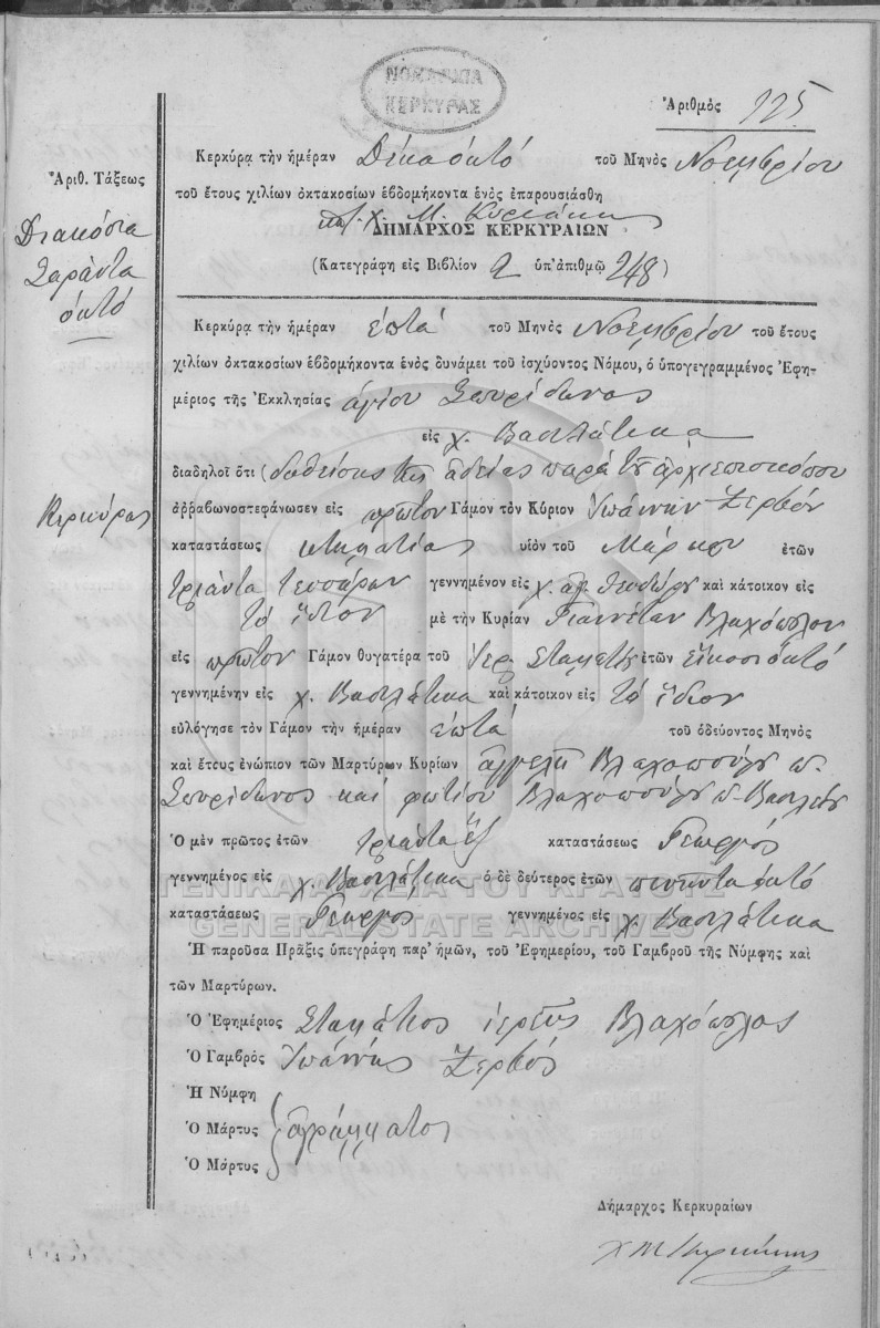 [Fonds] GRGSA-KER_REGM00 ΛΗΞΙΑΡΧΕΙΟ ΚΕΡΚΥΡΑΣ - Ληξιαρχικές Πράξεις Γάμων [1841 - 1932] Contents: Αριθμός πράξεων 1 - 324. |