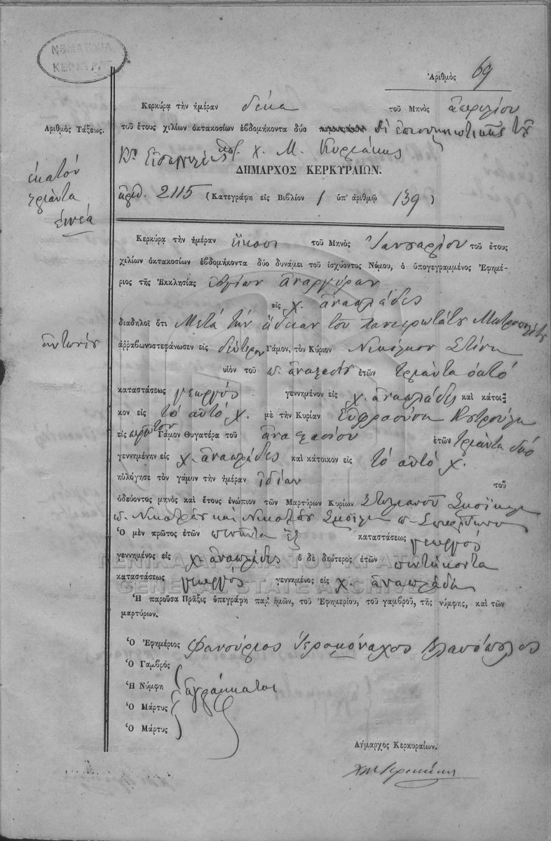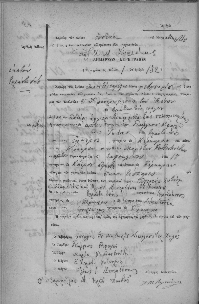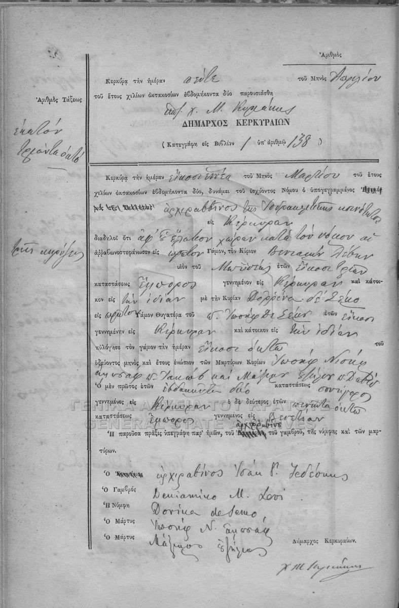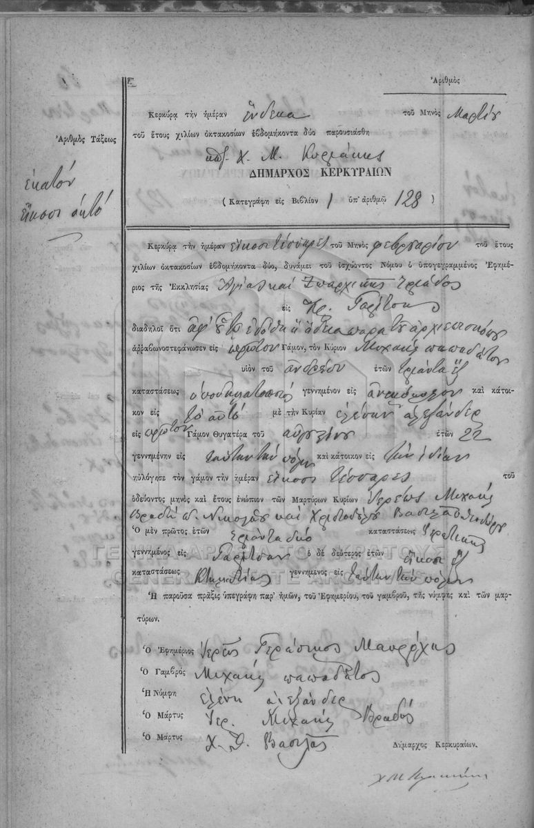 ΛΗΞΙΑΡΧΕΙΟ ΚΕΡΚΥΡΑΣ - Ληξιαρχικές Πράξεις Γάμων  [1841 - 1932]
