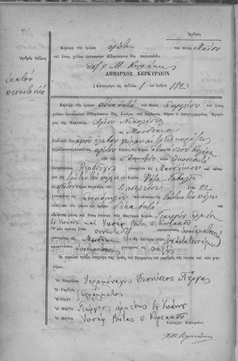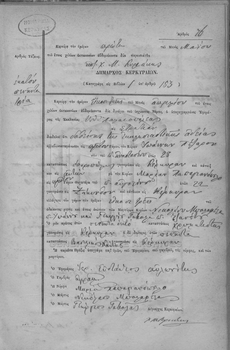 ΛΗΞΙΑΡΧΕΙΟ ΚΕΡΚΥΡΑΣ - Ληξιαρχικές Πράξεις Γάμων  [1841 - 1932]
