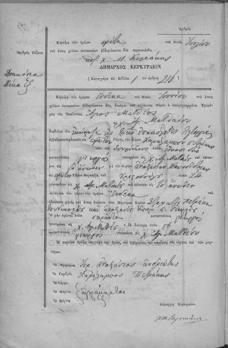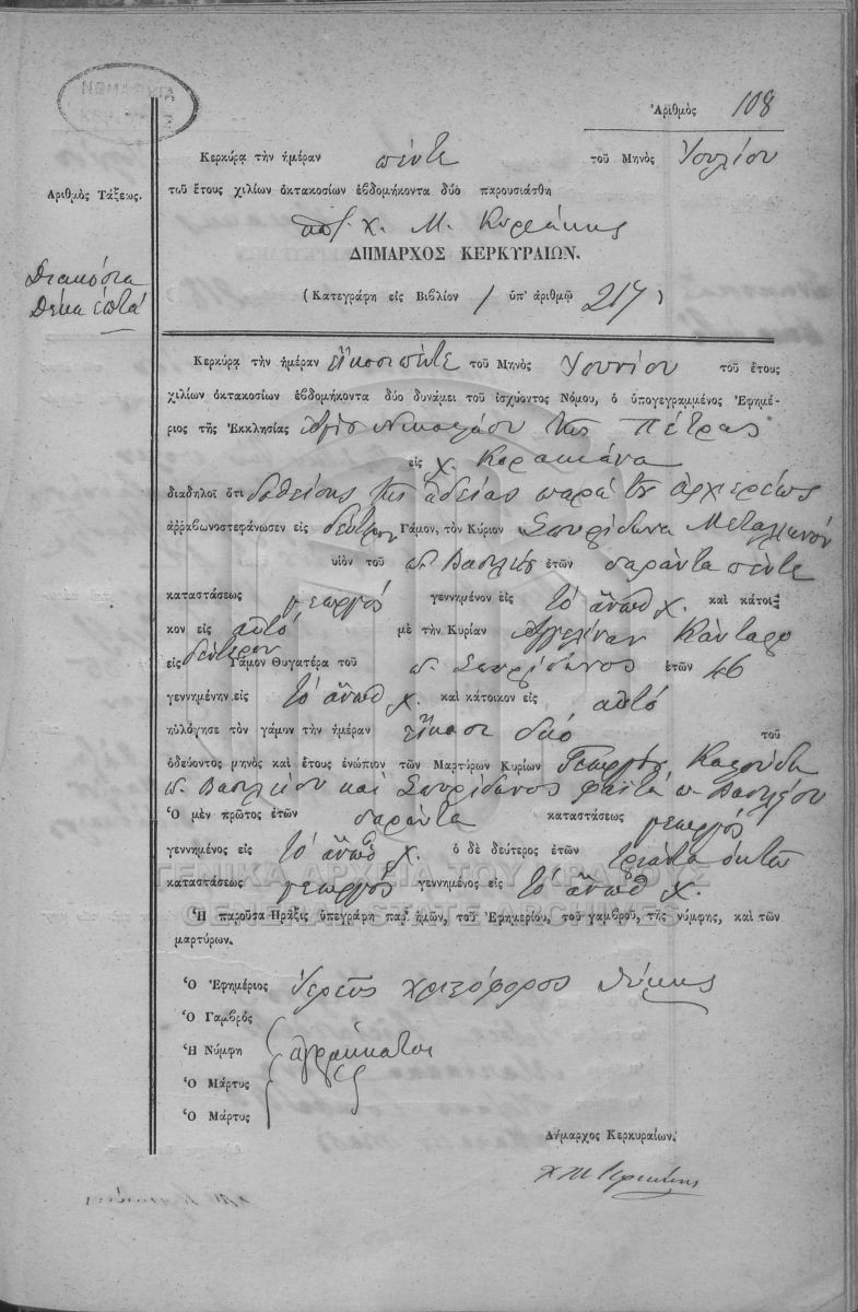 |  | [Fonds] GRGSA-KER_REGM00 ΛΗΞΙΑΡΧΕΙΟ ΚΕΡΚΥΡΑΣ - Ληξιαρχικές Πράξεις Γάμων [1841 - 1932] Contents: Αριθμός πράξεων 1 - 324. |