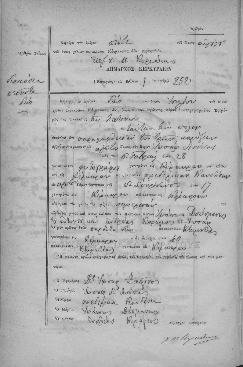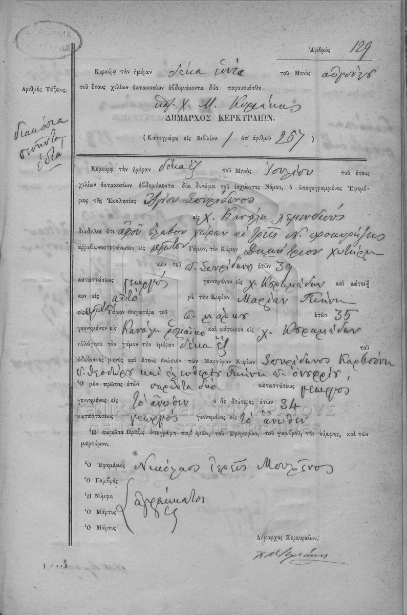 ΛΗΞΙΑΡΧΕΙΟ ΚΕΡΚΥΡΑΣ - Ληξιαρχικές Πράξεις Γάμων  [1841 - 1932]