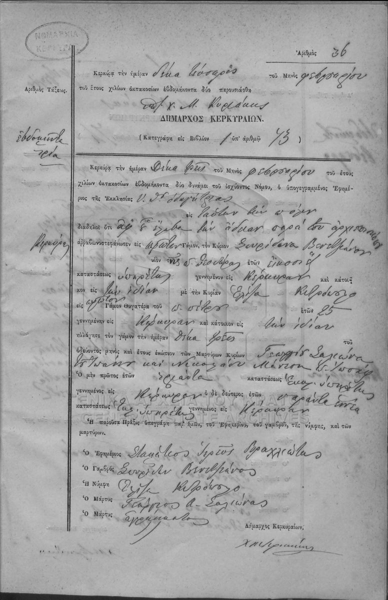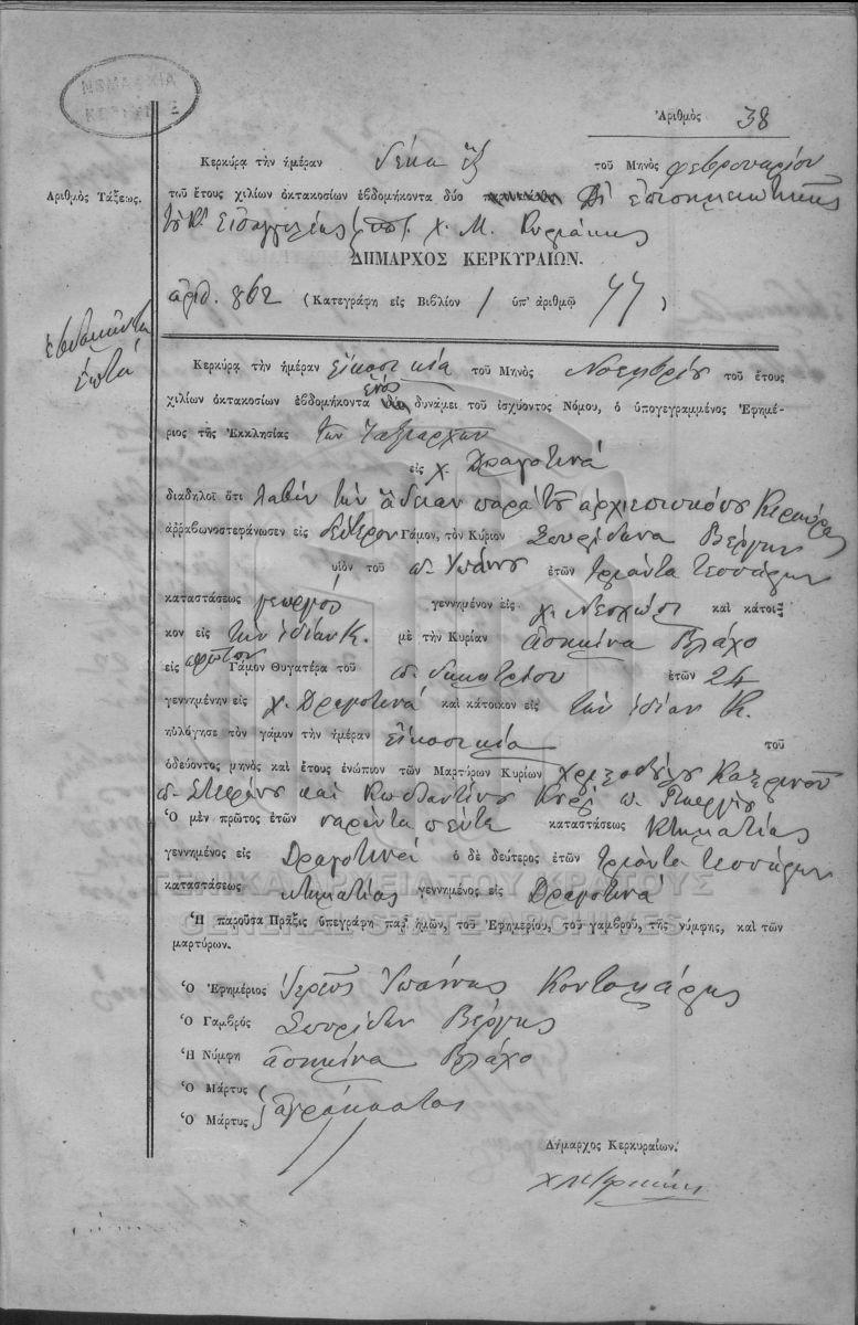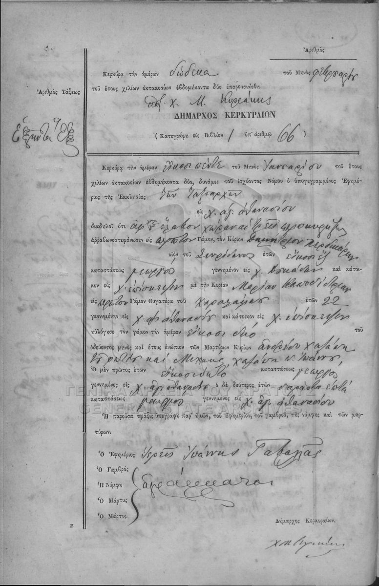 [Fonds] GRGSA-KER_REGM00 ΛΗΞΙΑΡΧΕΙΟ ΚΕΡΚΥΡΑΣ - Ληξιαρχικές Πράξεις Γάμων [1841 - 1932] Contents: Αριθμός πράξεων 1 - 324. |