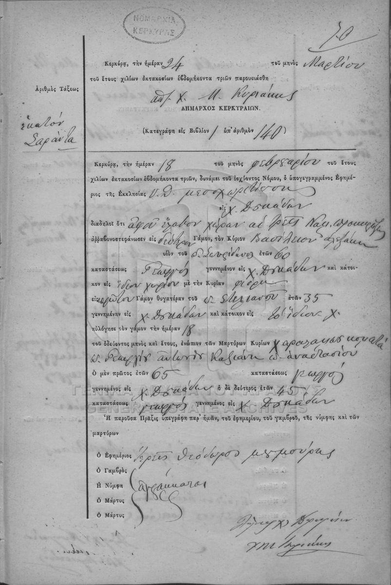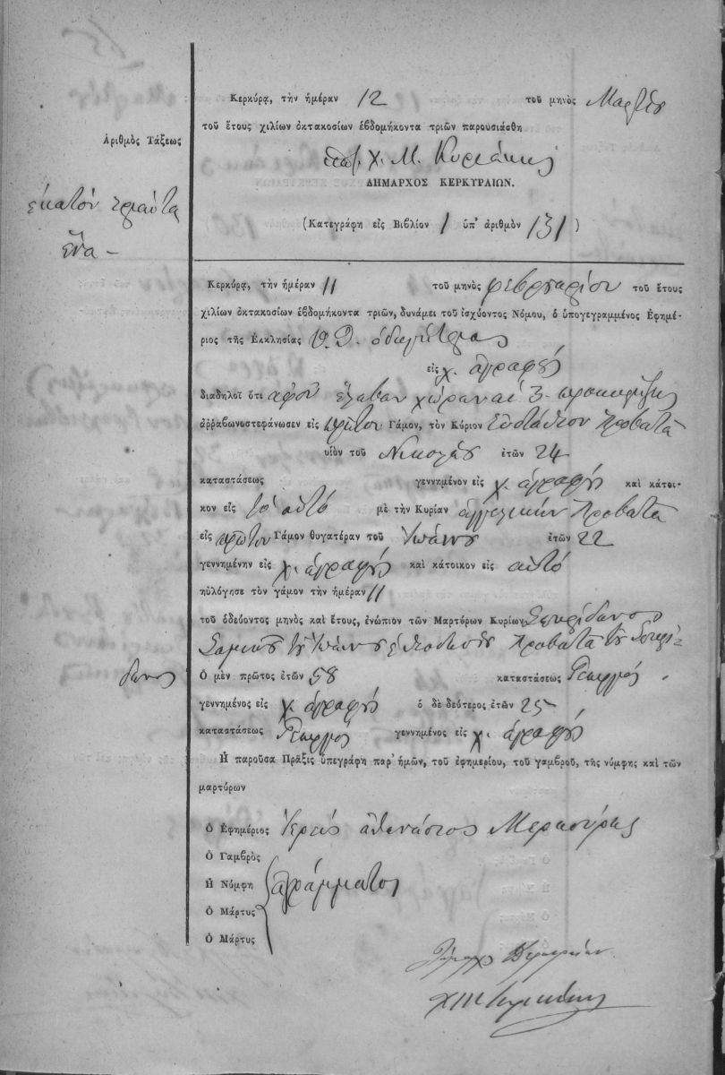 [Αρχείο] GRGSA-KER_REGM00 ΛΗΞΙΑΡΧΕΙΟ ΚΕΡΚΥΡΑΣ - Ληξιαρχικές Πράξεις Γάμων [1841 - 1932] Περιεχόμενα: Αριθμός πράξεων 1 - 324. |