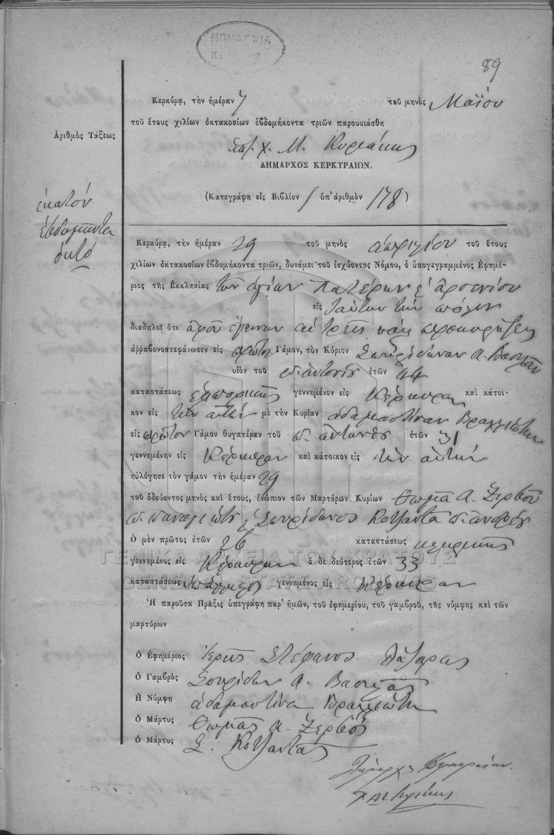 ΛΗΞΙΑΡΧΕΙΟ ΚΕΡΚΥΡΑΣ - Ληξιαρχικές Πράξεις Γάμων  [1841 - 1932]