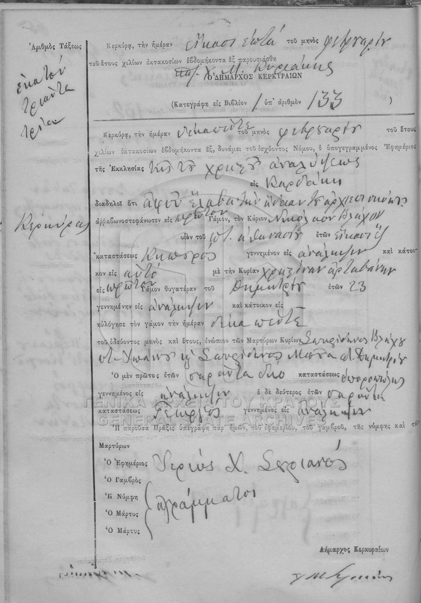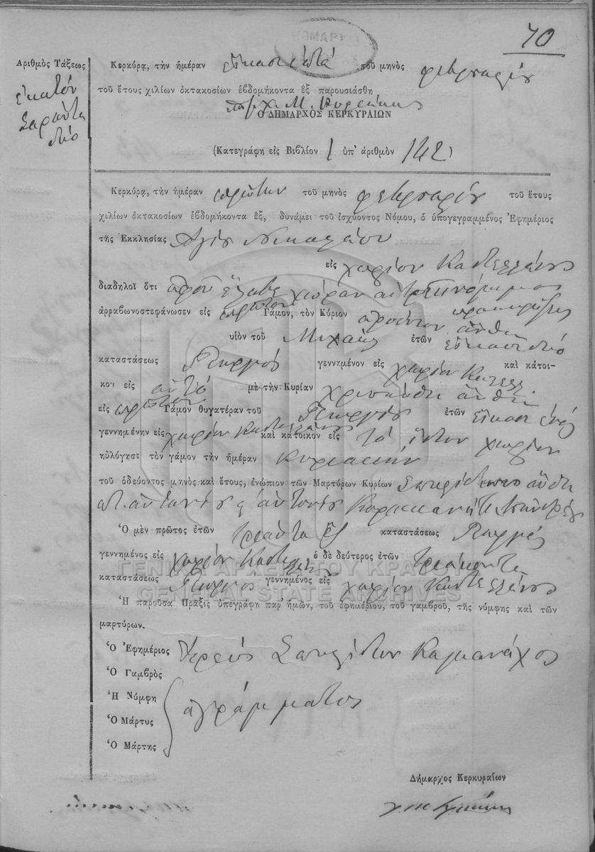 ΛΗΞΙΑΡΧΕΙΟ ΚΕΡΚΥΡΑΣ - Ληξιαρχικές Πράξεις Γάμων  [1841 - 1932]