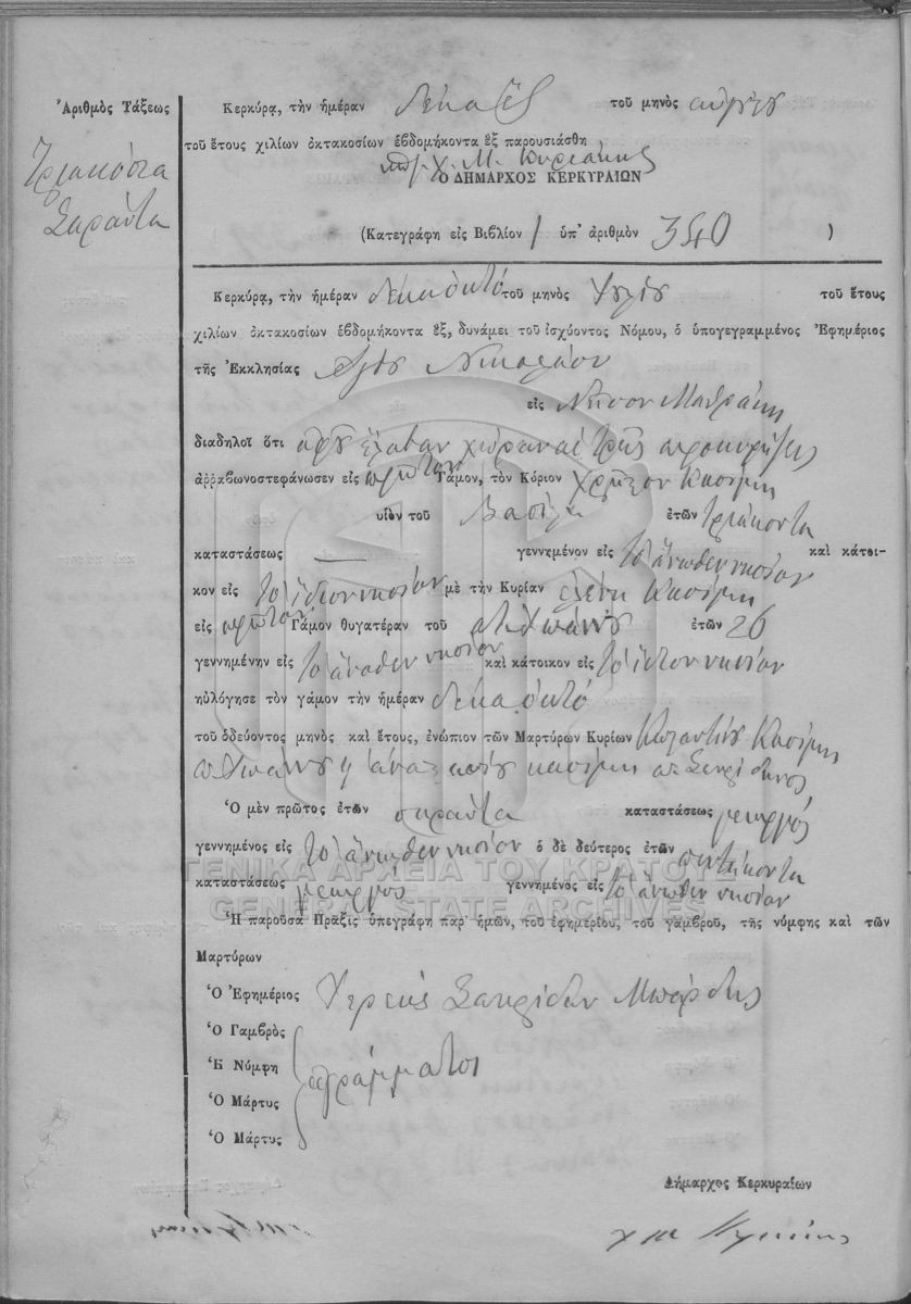 ΛΗΞΙΑΡΧΕΙΟ ΚΕΡΚΥΡΑΣ - Ληξιαρχικές Πράξεις Γάμων  [1841 - 1932]