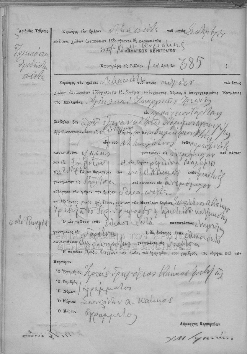 ΛΗΞΙΑΡΧΕΙΟ ΚΕΡΚΥΡΑΣ - Ληξιαρχικές Πράξεις Γάμων  [1841 - 1932]