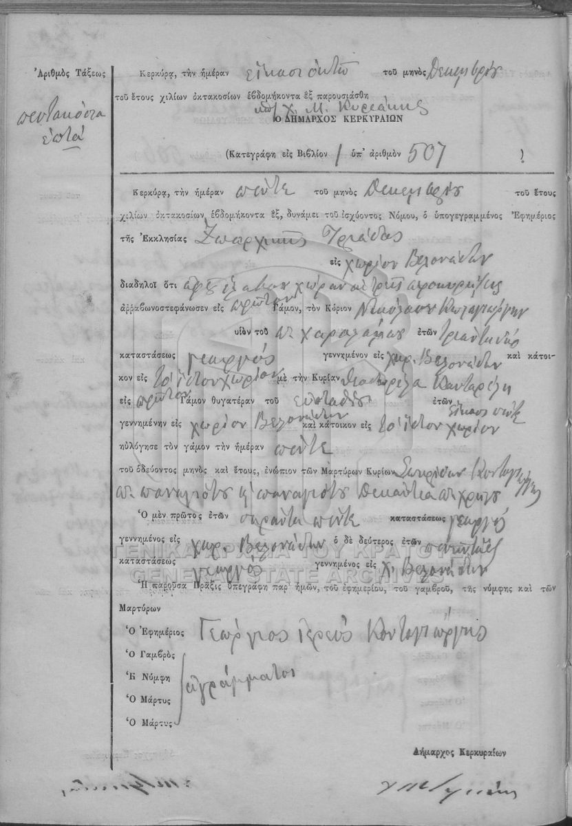 [Αρχείο] GRGSA-KER_REGM00 ΛΗΞΙΑΡΧΕΙΟ ΚΕΡΚΥΡΑΣ - Ληξιαρχικές Πράξεις Γάμων [1841 - 1932] Περιεχόμενα: Αριθμός πράξεων 1 - 324. |