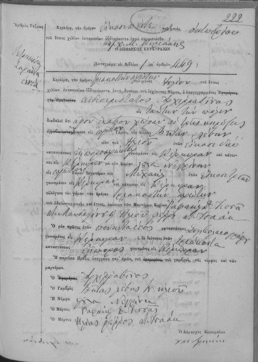 ΛΗΞΙΑΡΧΕΙΟ ΚΕΡΚΥΡΑΣ - Ληξιαρχικές Πράξεις Γάμων  [1841 - 1932]