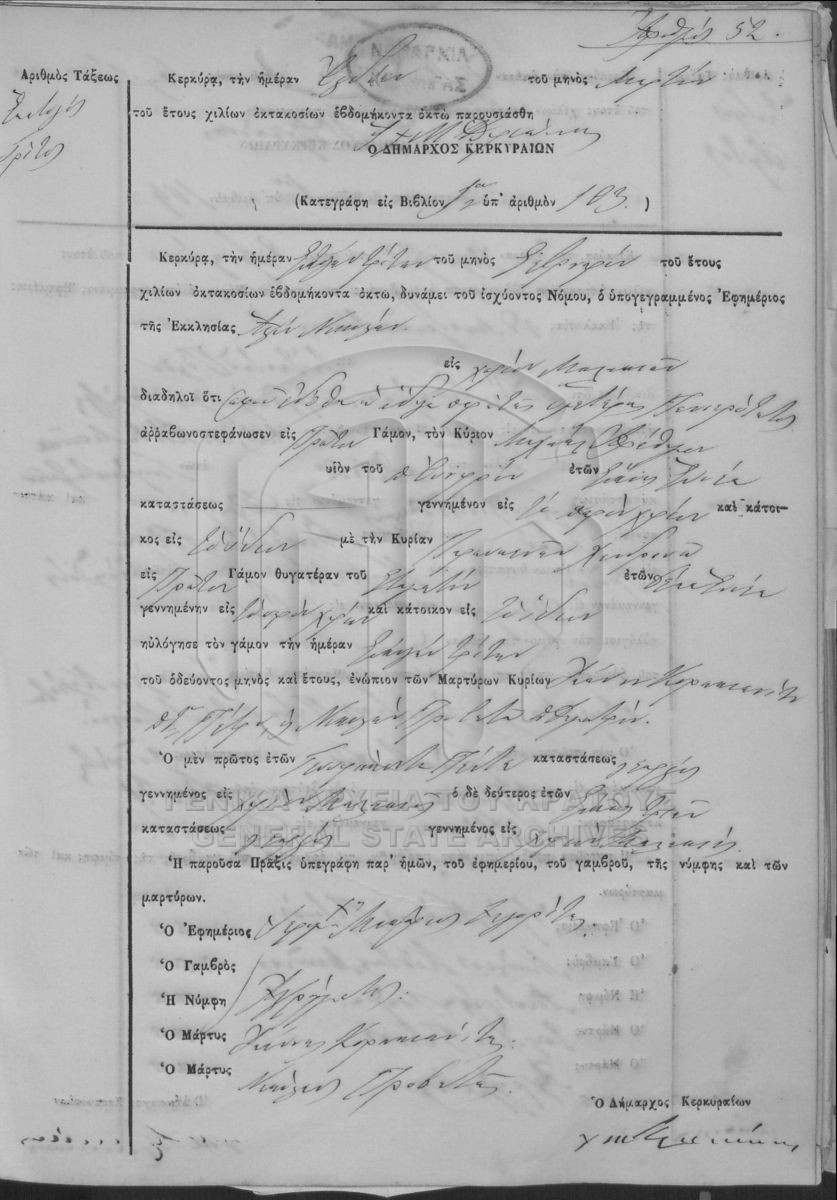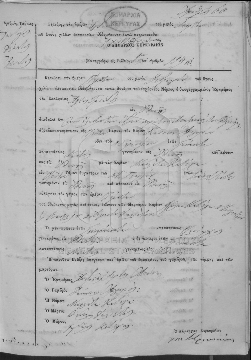 ΛΗΞΙΑΡΧΕΙΟ ΚΕΡΚΥΡΑΣ - Ληξιαρχικές Πράξεις Γάμων  [1841 - 1932]