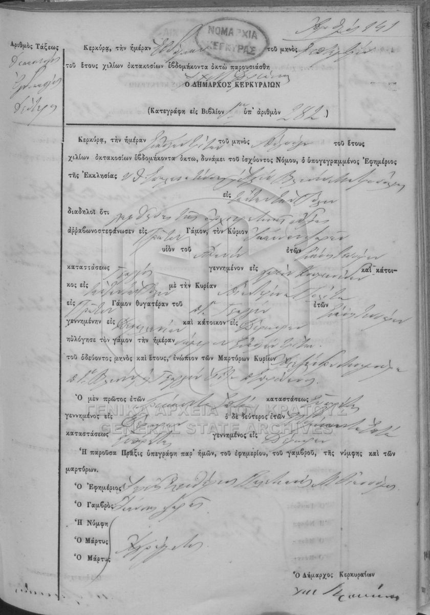 ΛΗΞΙΑΡΧΕΙΟ ΚΕΡΚΥΡΑΣ - Ληξιαρχικές Πράξεις Γάμων  [1841 - 1932]