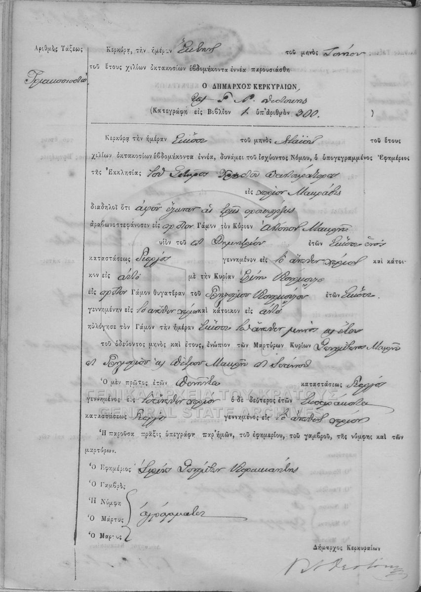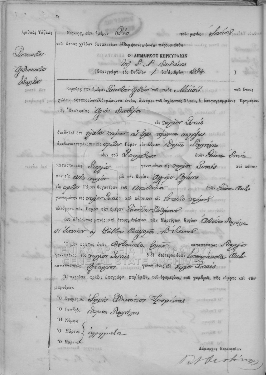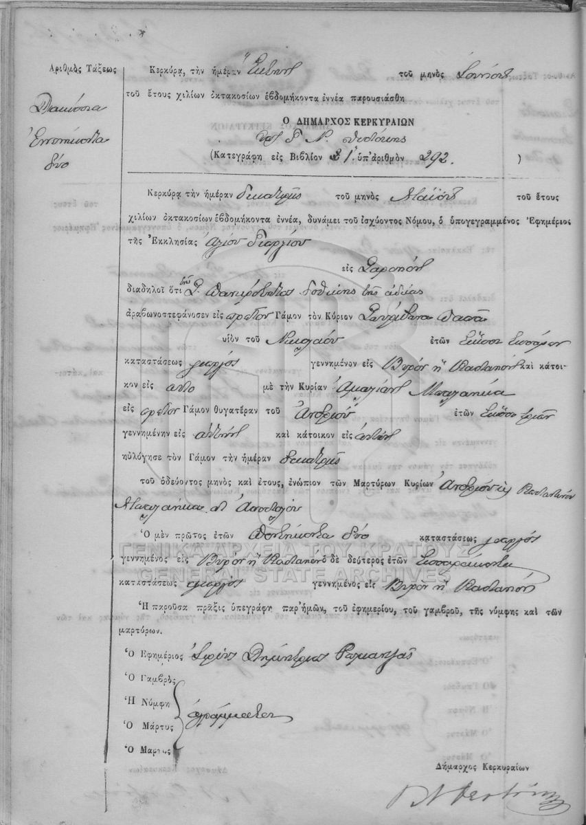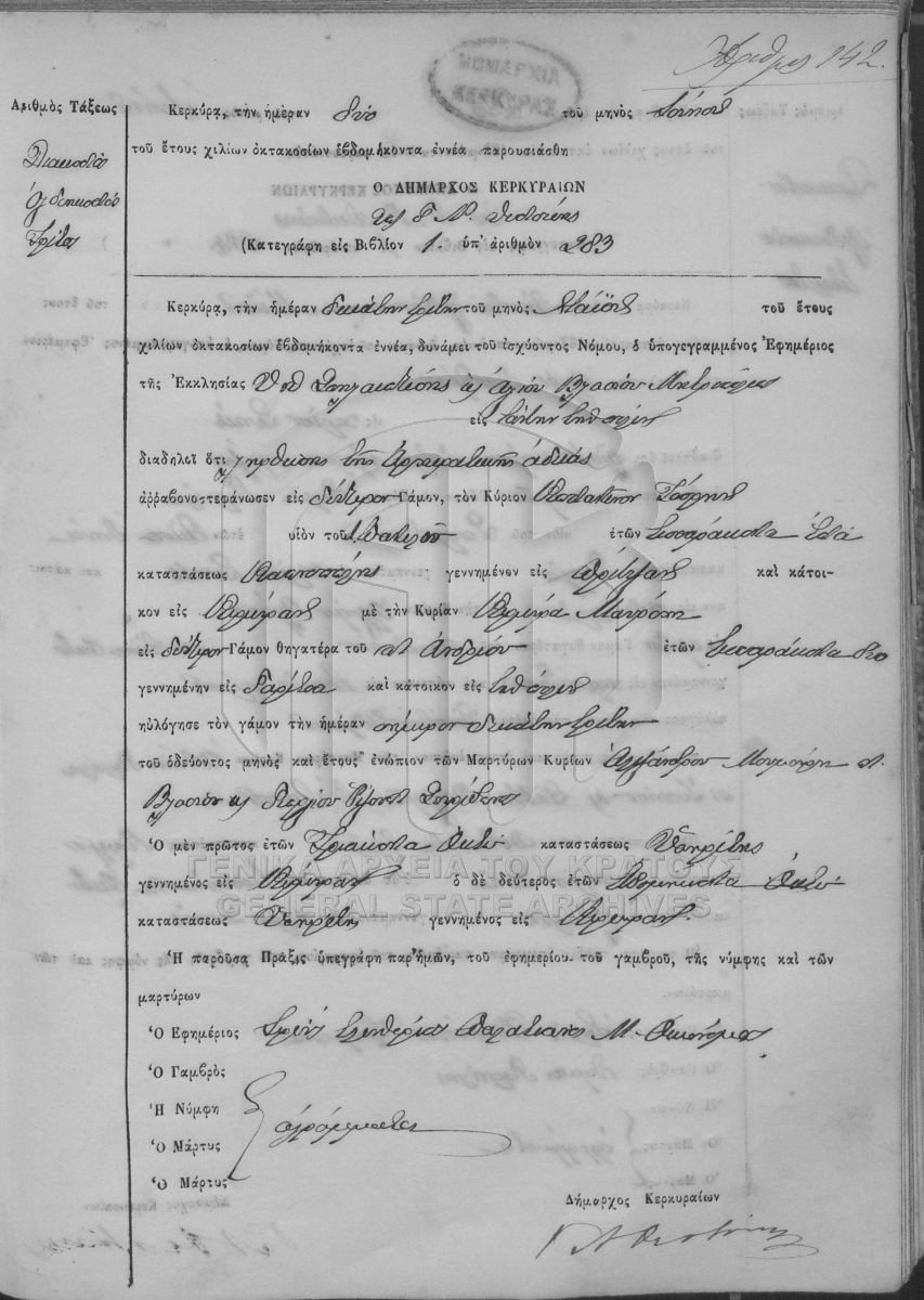 ΛΗΞΙΑΡΧΕΙΟ ΚΕΡΚΥΡΑΣ - Ληξιαρχικές Πράξεις Γάμων  [1841 - 1932]