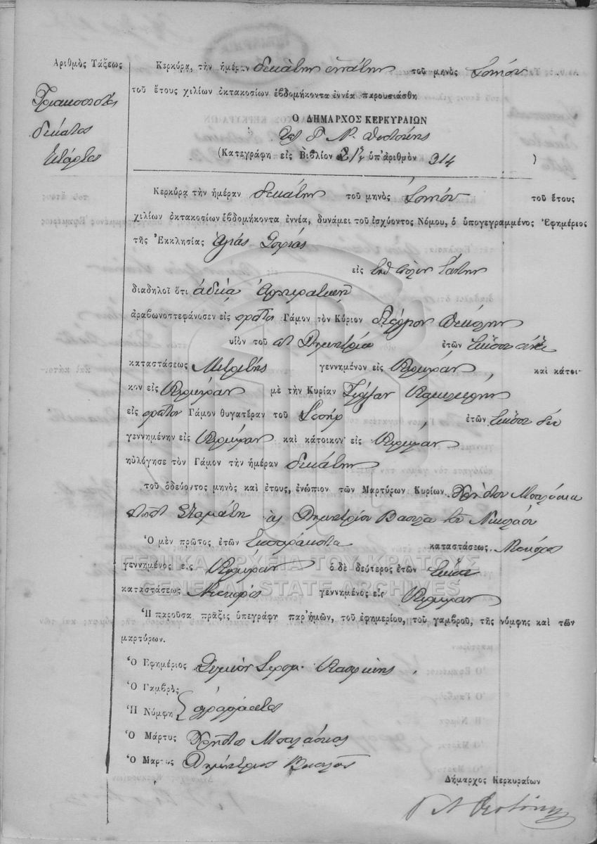 ΛΗΞΙΑΡΧΕΙΟ ΚΕΡΚΥΡΑΣ - Ληξιαρχικές Πράξεις Γάμων  [1841 - 1932]