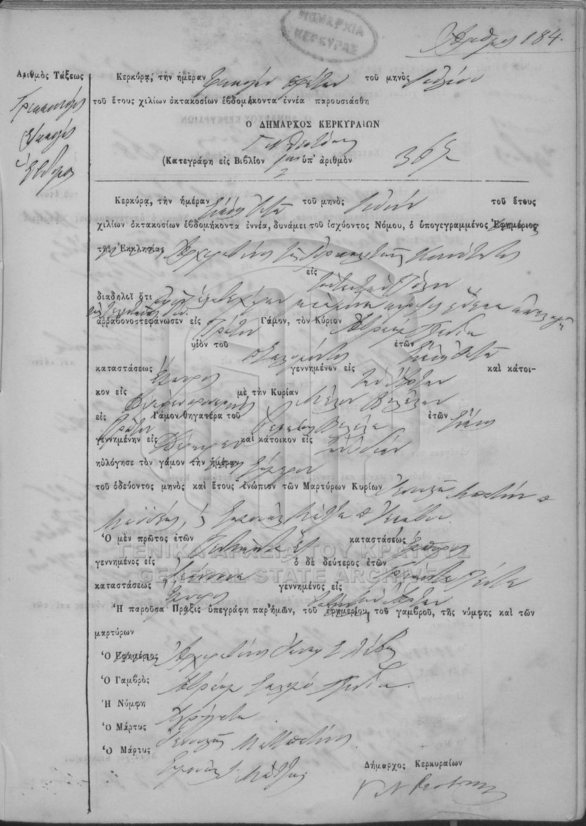 ΛΗΞΙΑΡΧΕΙΟ ΚΕΡΚΥΡΑΣ - Ληξιαρχικές Πράξεις Γάμων  [1841 - 1932]