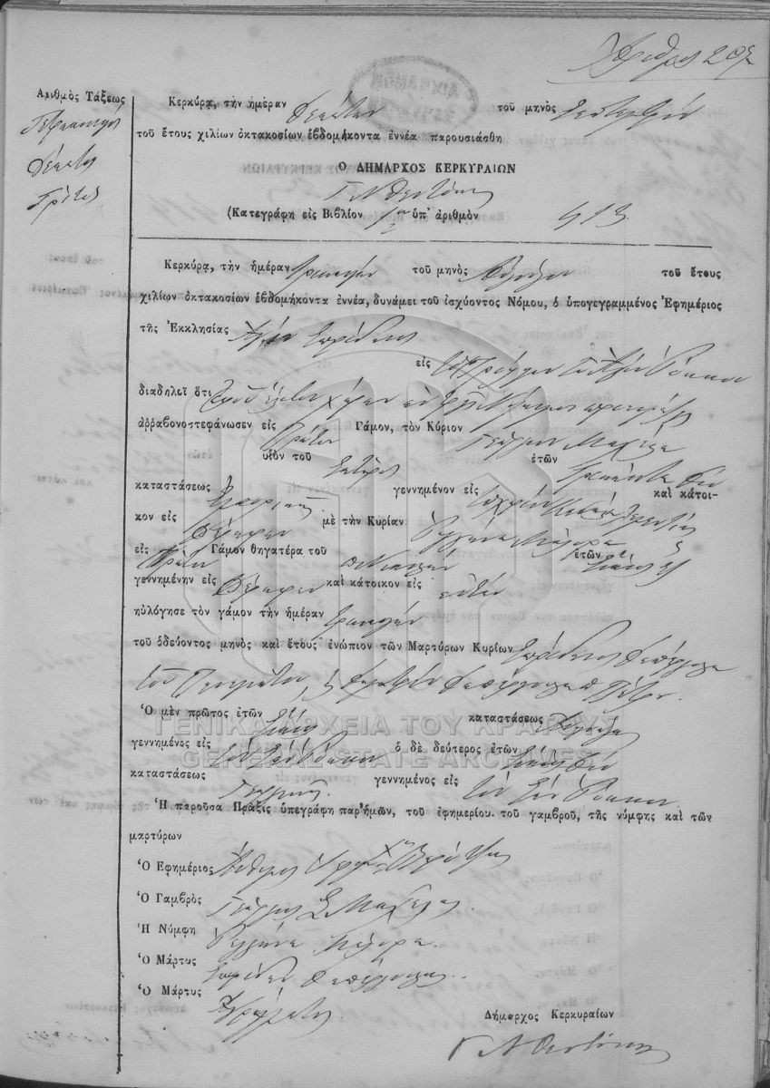 ΛΗΞΙΑΡΧΕΙΟ ΚΕΡΚΥΡΑΣ - Ληξιαρχικές Πράξεις Γάμων  [1841 - 1932]