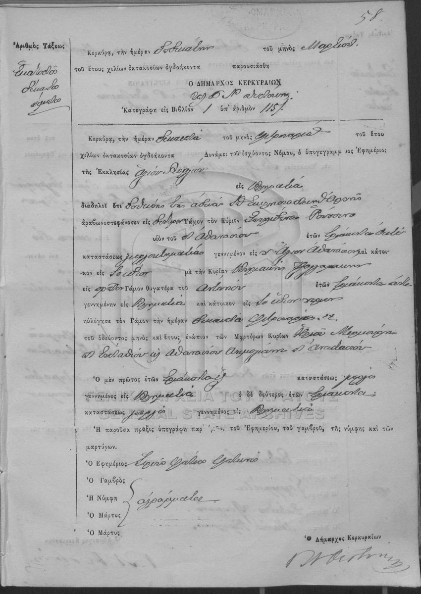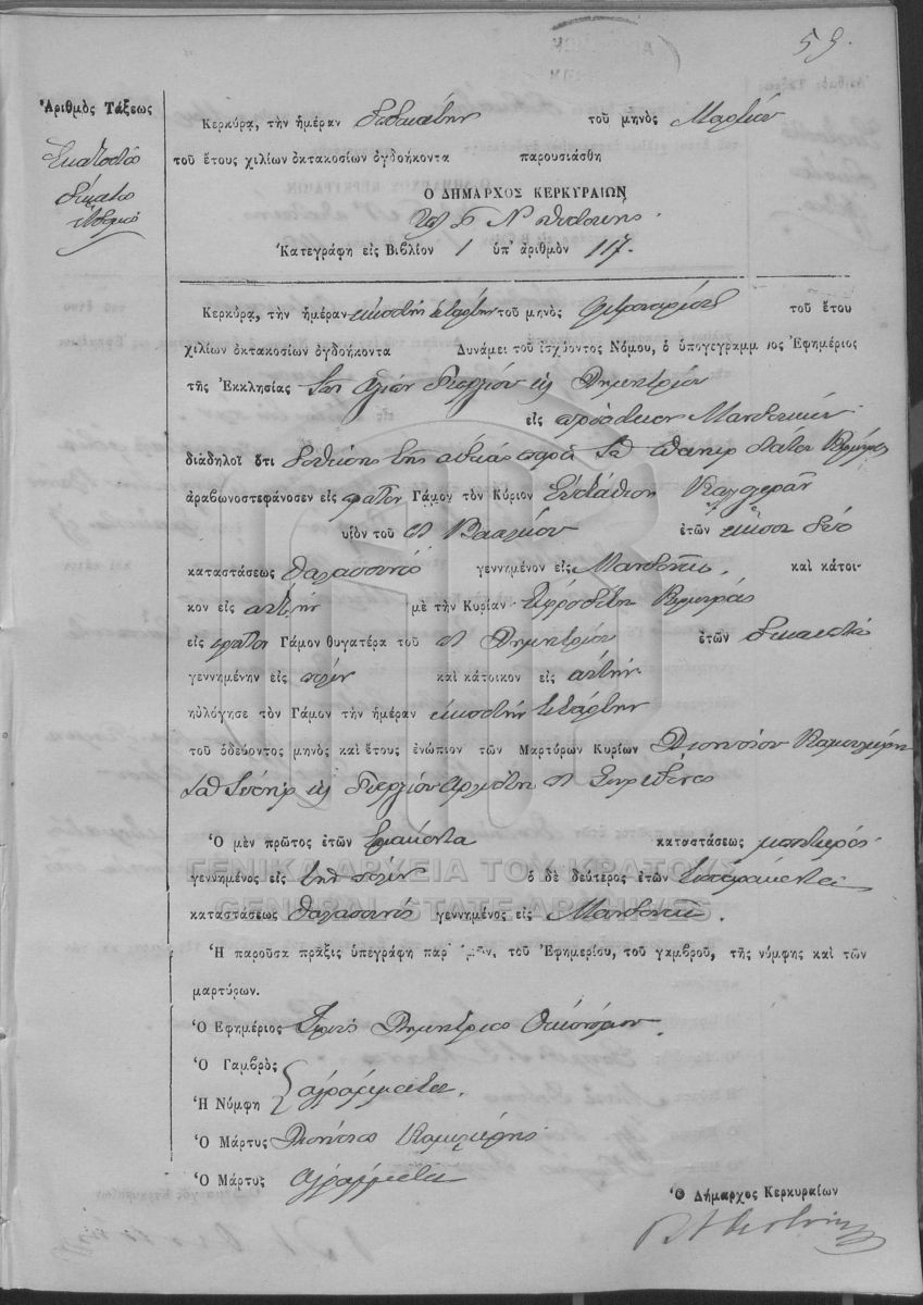 ΛΗΞΙΑΡΧΕΙΟ ΚΕΡΚΥΡΑΣ - Ληξιαρχικές Πράξεις Γάμων  [1841 - 1932]
